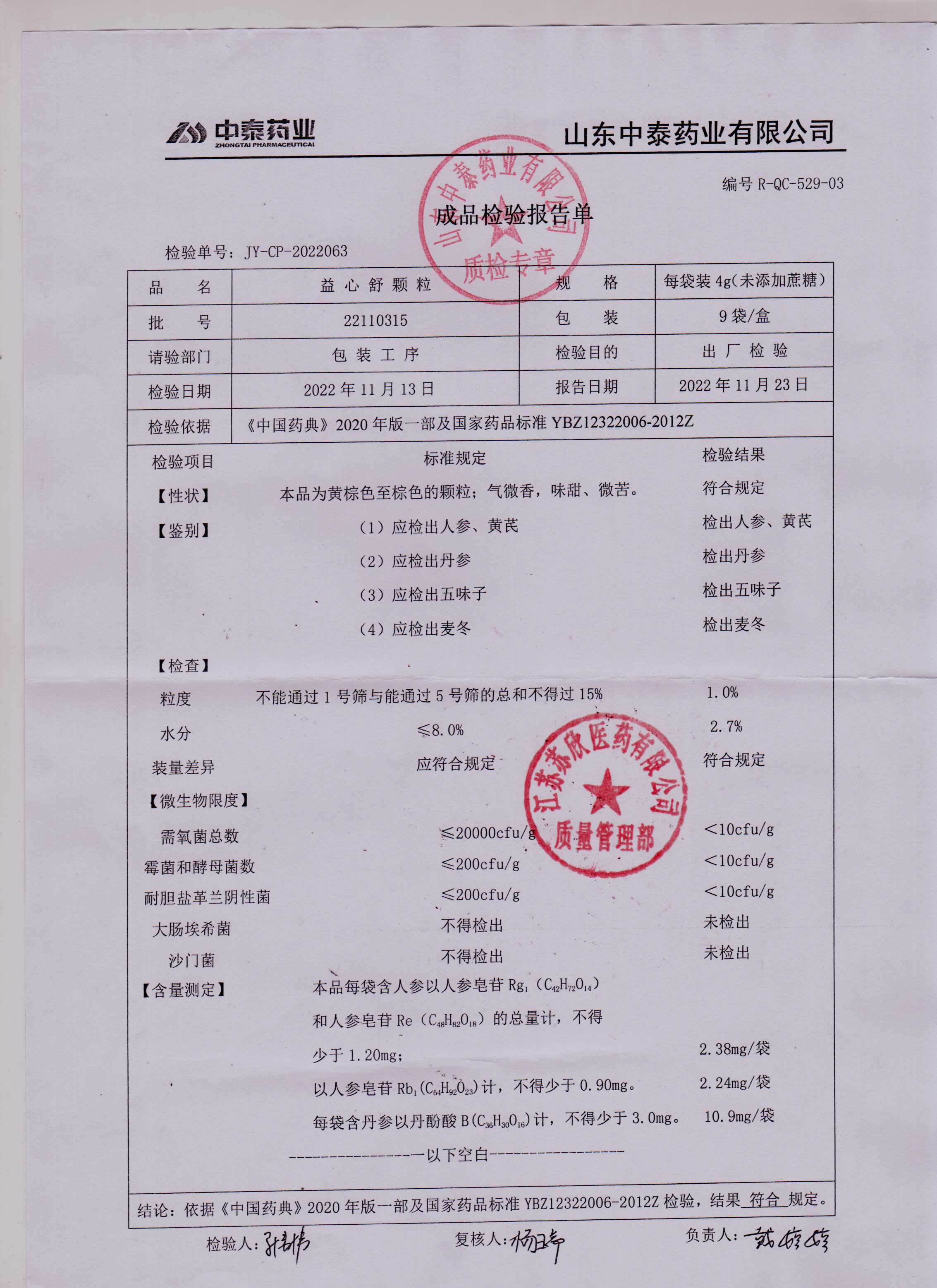 益心舒颗粒22110315