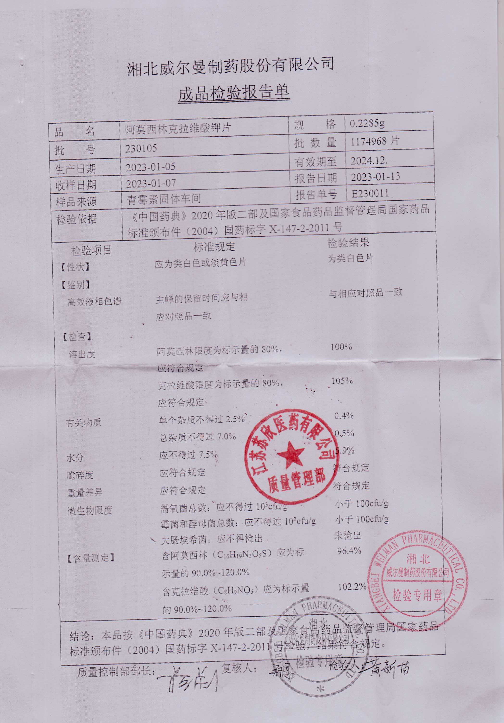 阿莫西林克拉维酸钾片230105