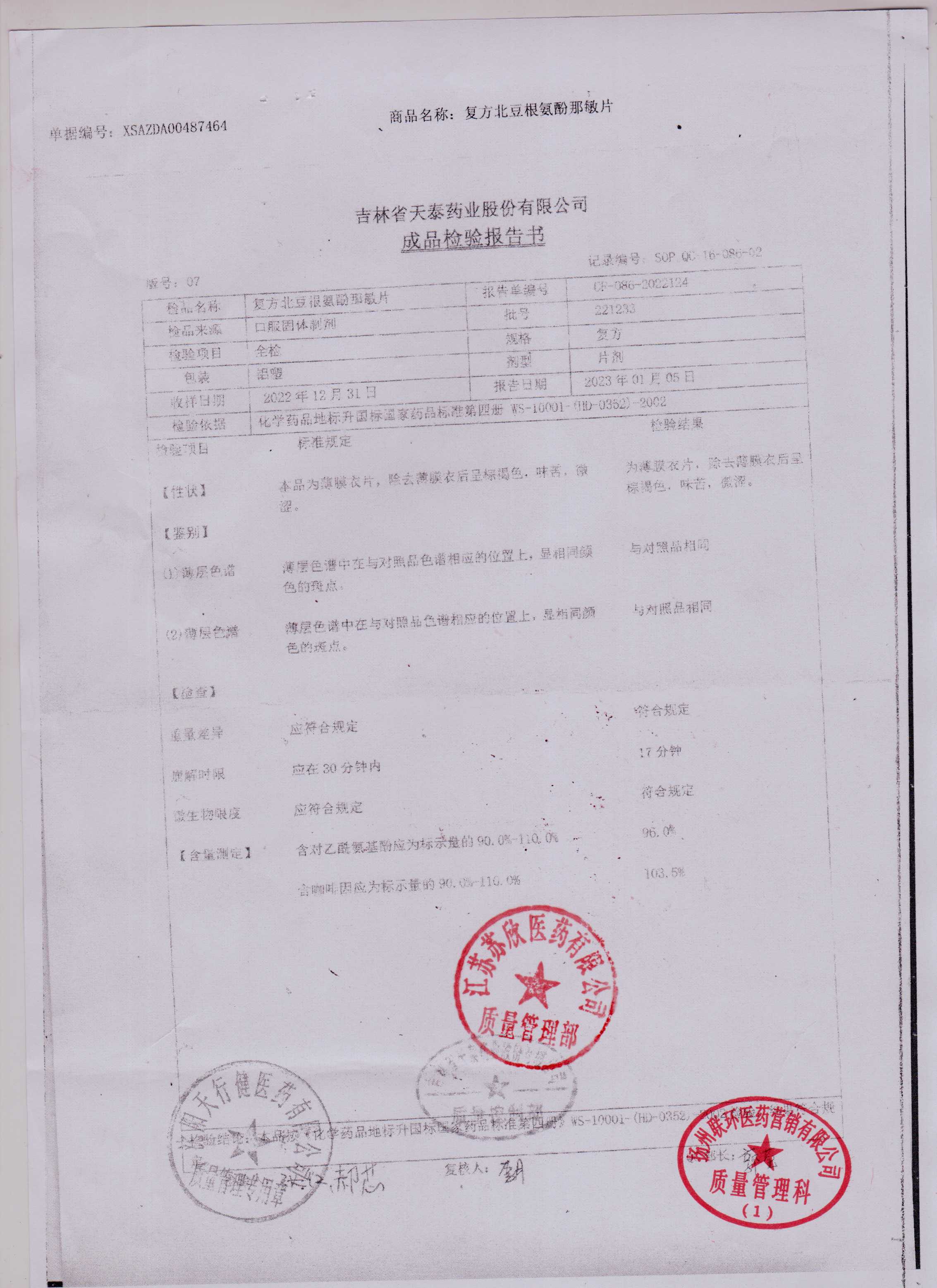 复方北豆根氨酚那敏片221233