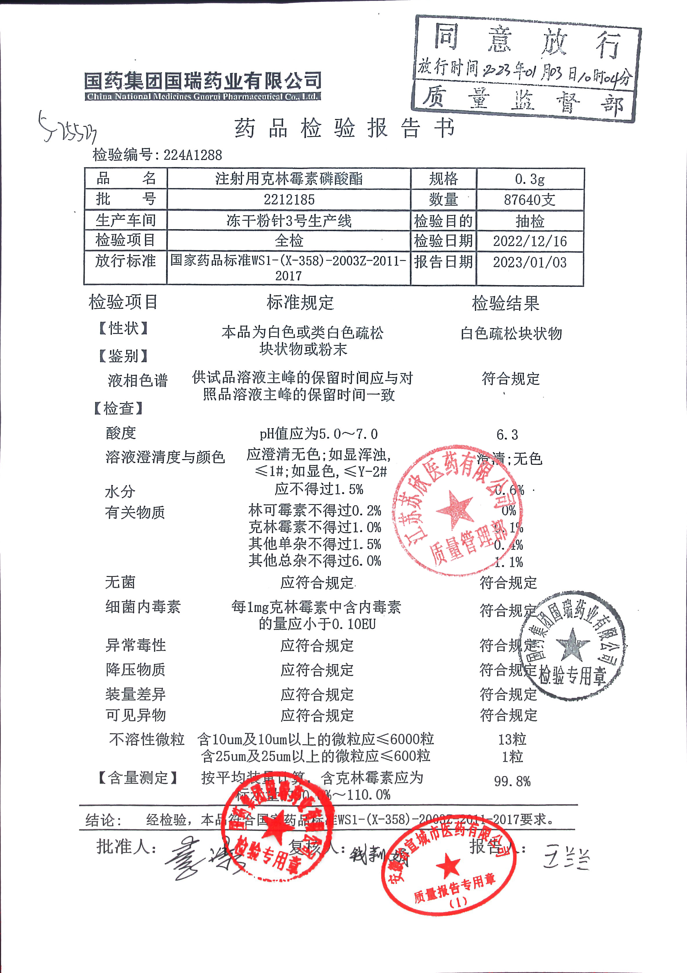 注射用克林霉素磷酸酯2212185