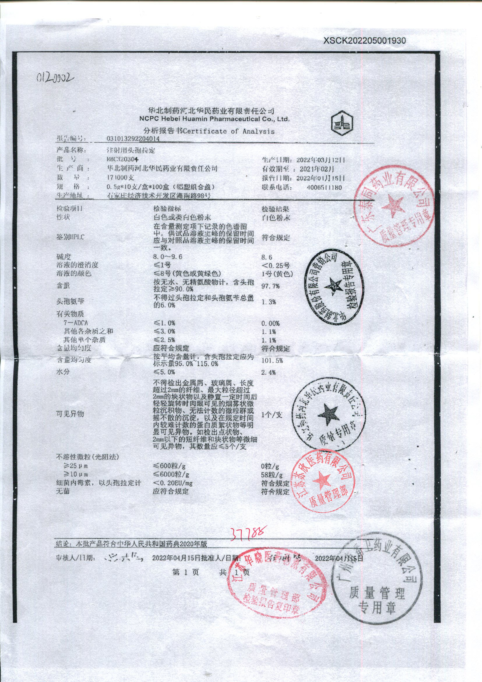 注射用头孢拉定RBC320304