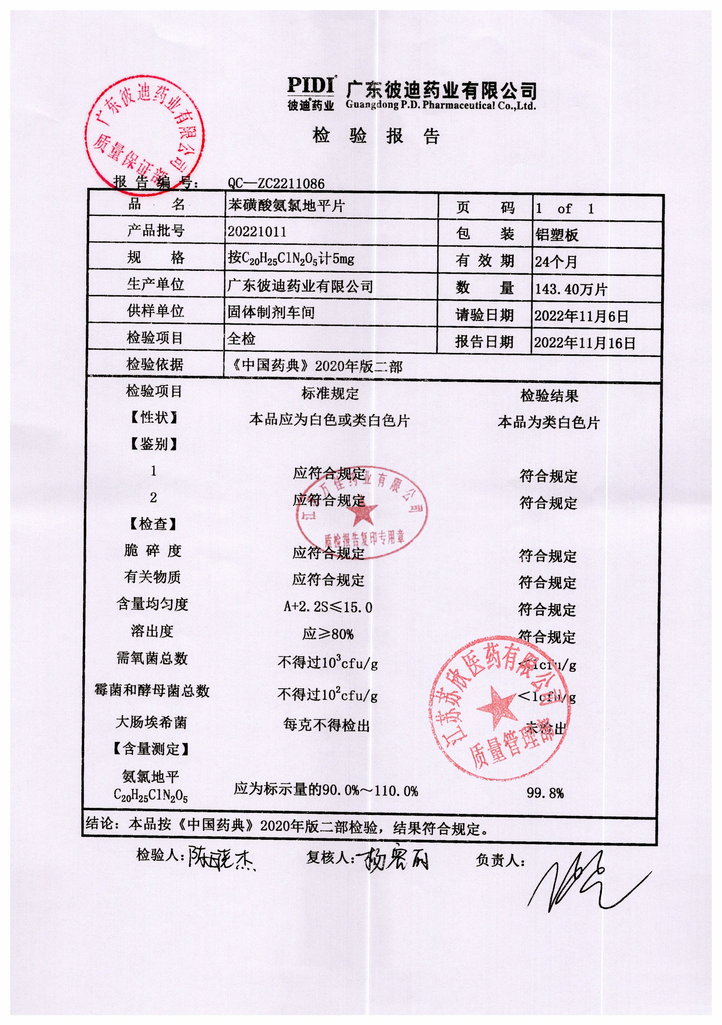 苯磺酸氨氯地平片20221011