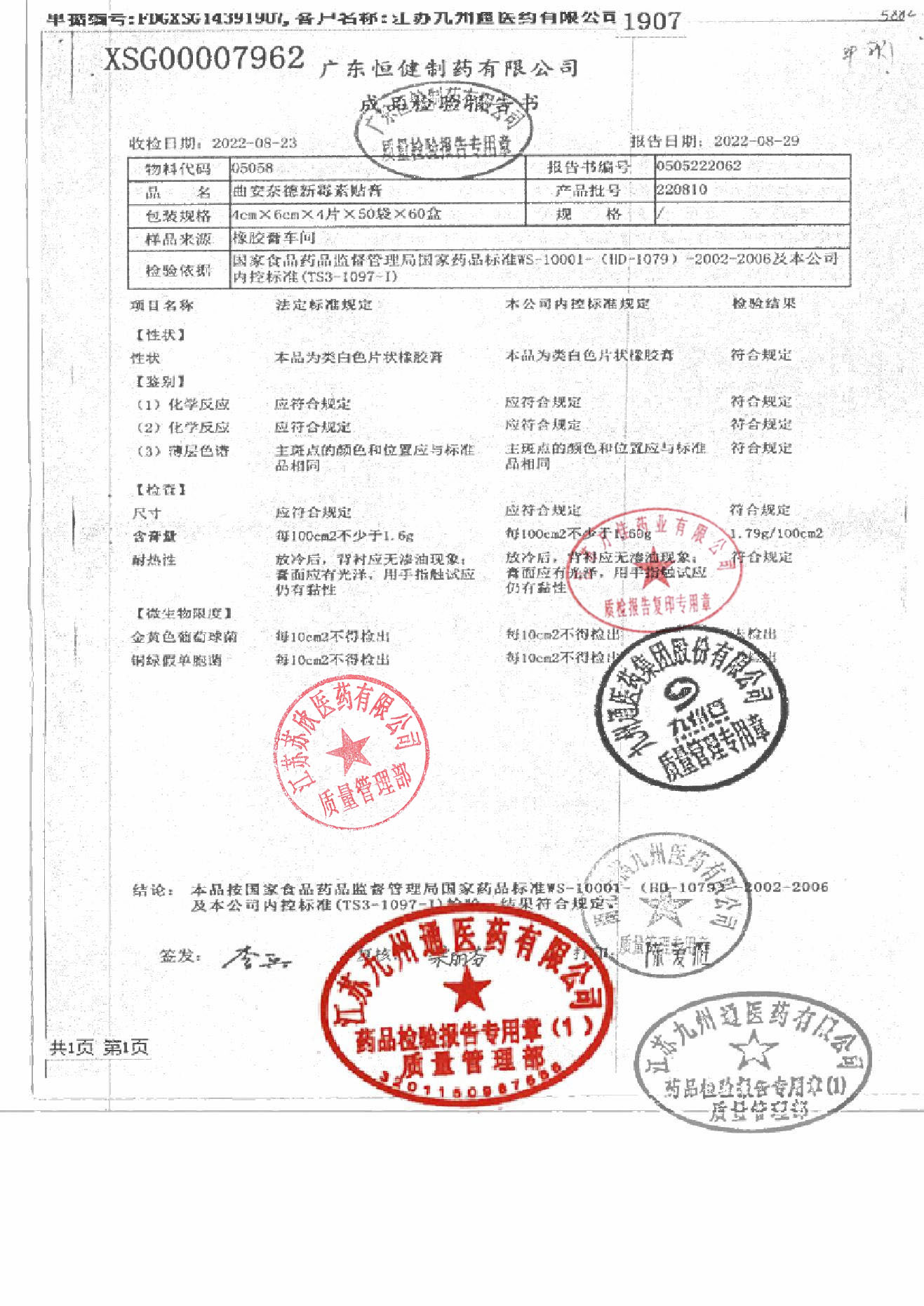 曲安奈德新霉素贴膏(肤疾宁贴膏)220810