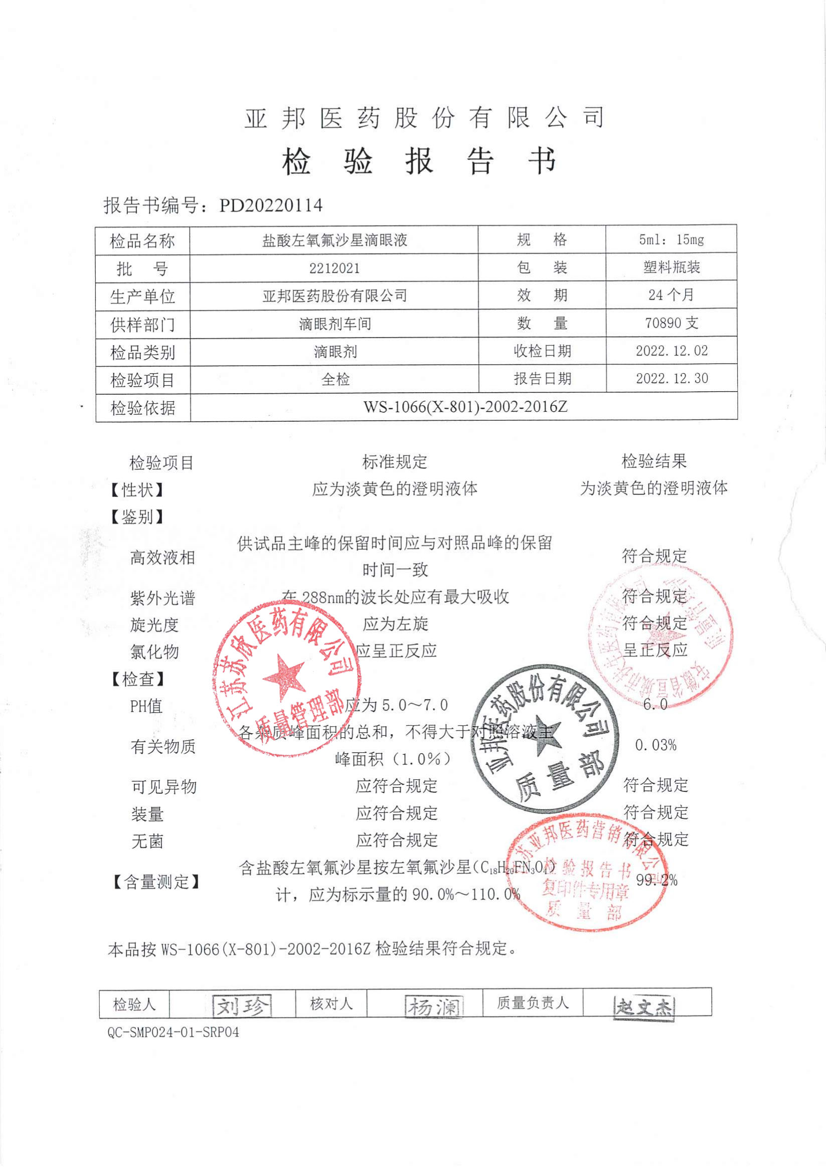 盐酸左氧氟沙星滴眼液2212021
