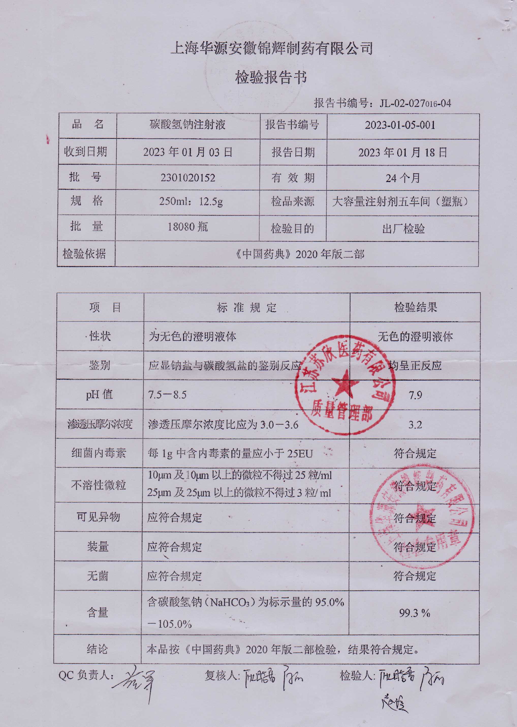 碳酸氢钠注射液2301020152
