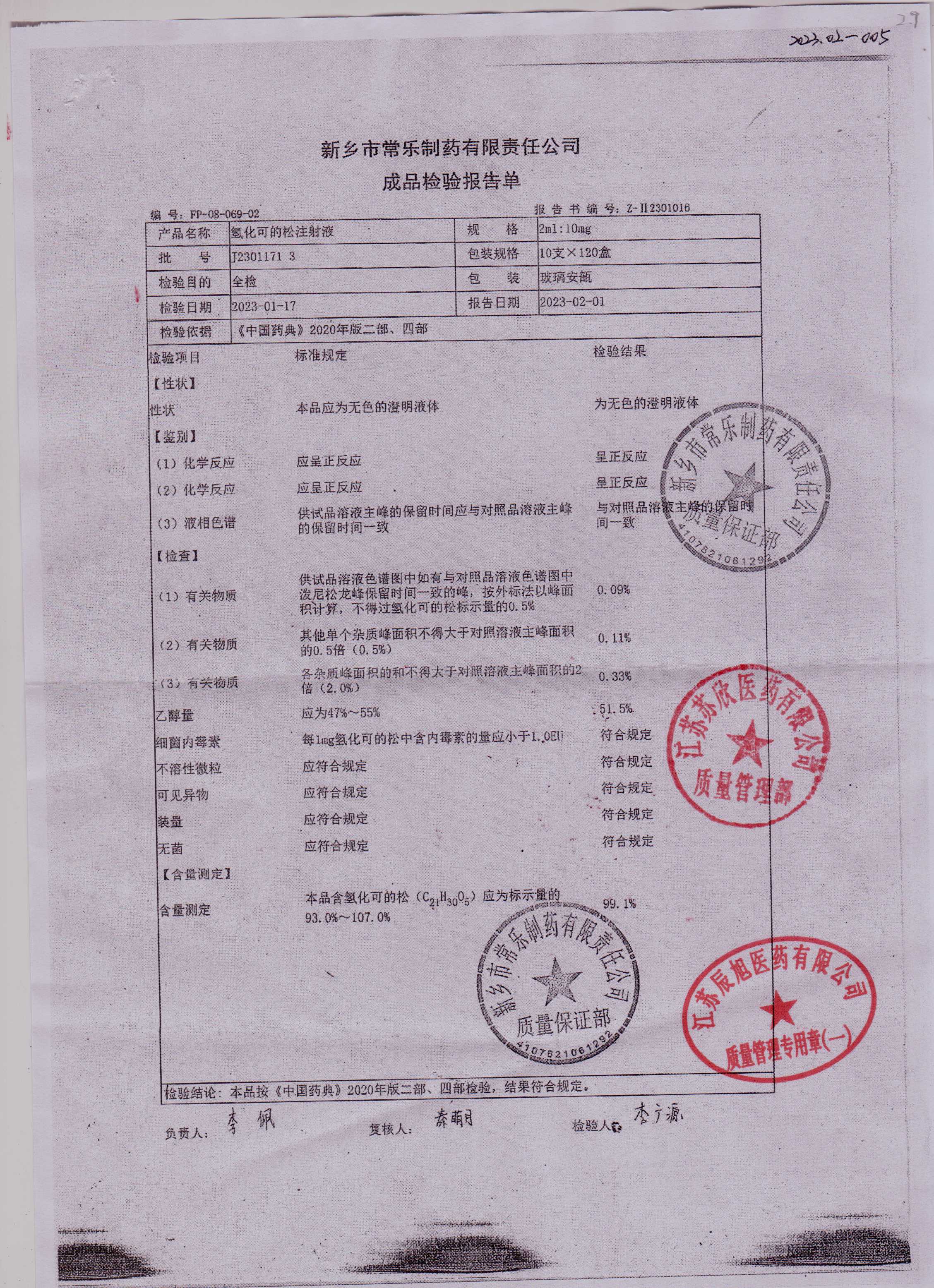 氢化可的松注射液J2301171 3