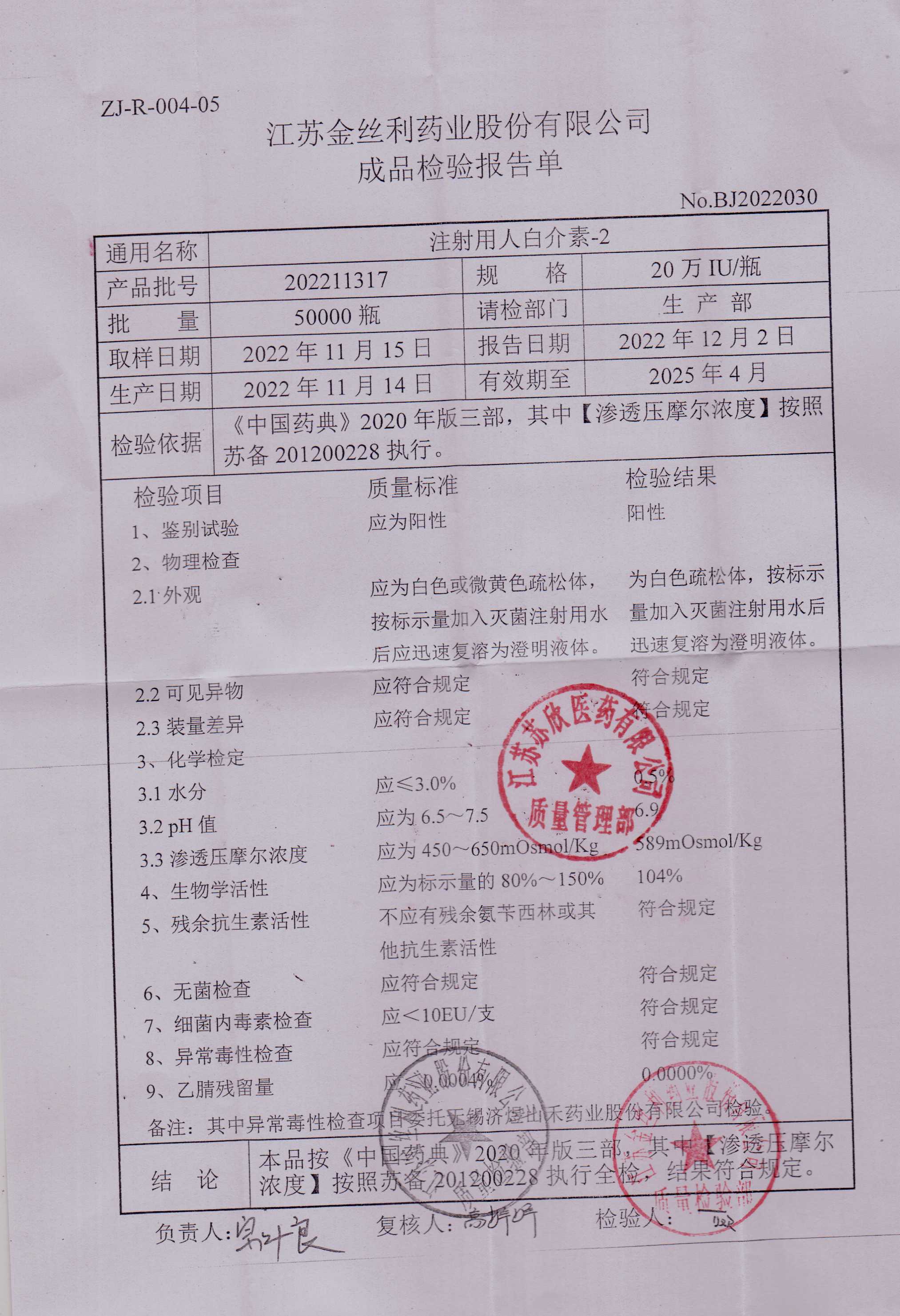 注射用人白介素-2 202211317
