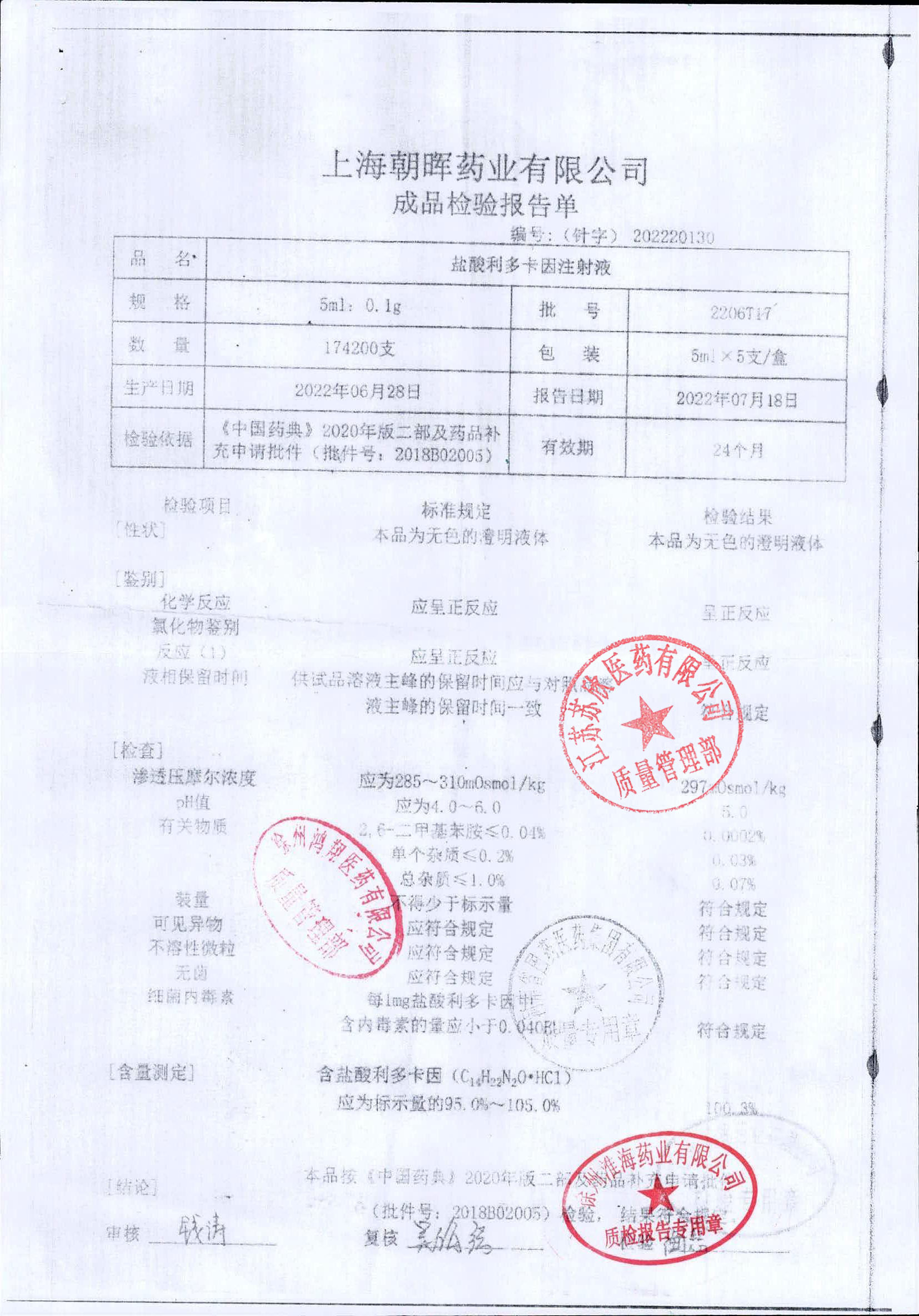 盐酸利多卡因注射液2206T17