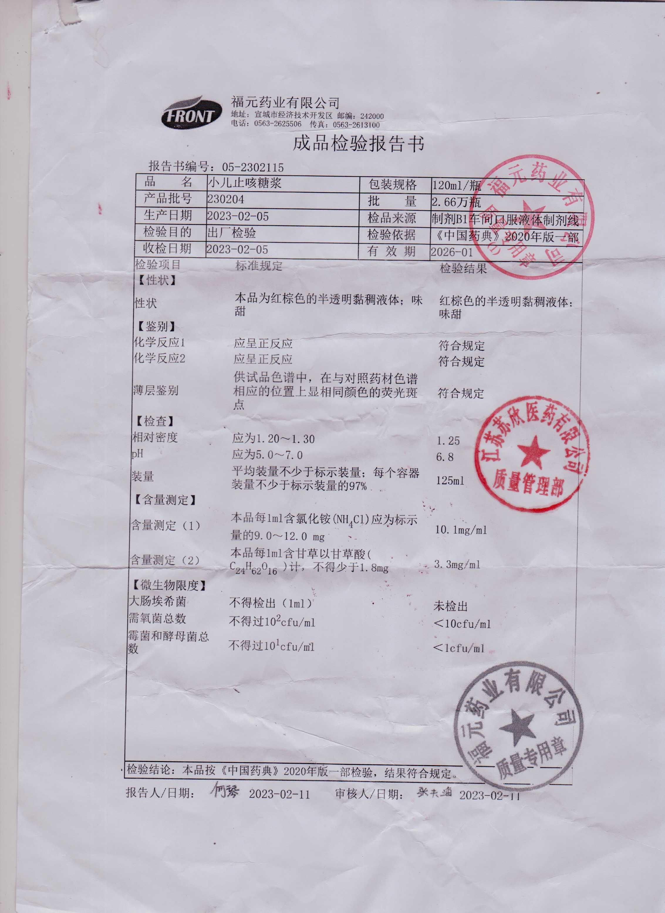 小儿止咳糖浆230204