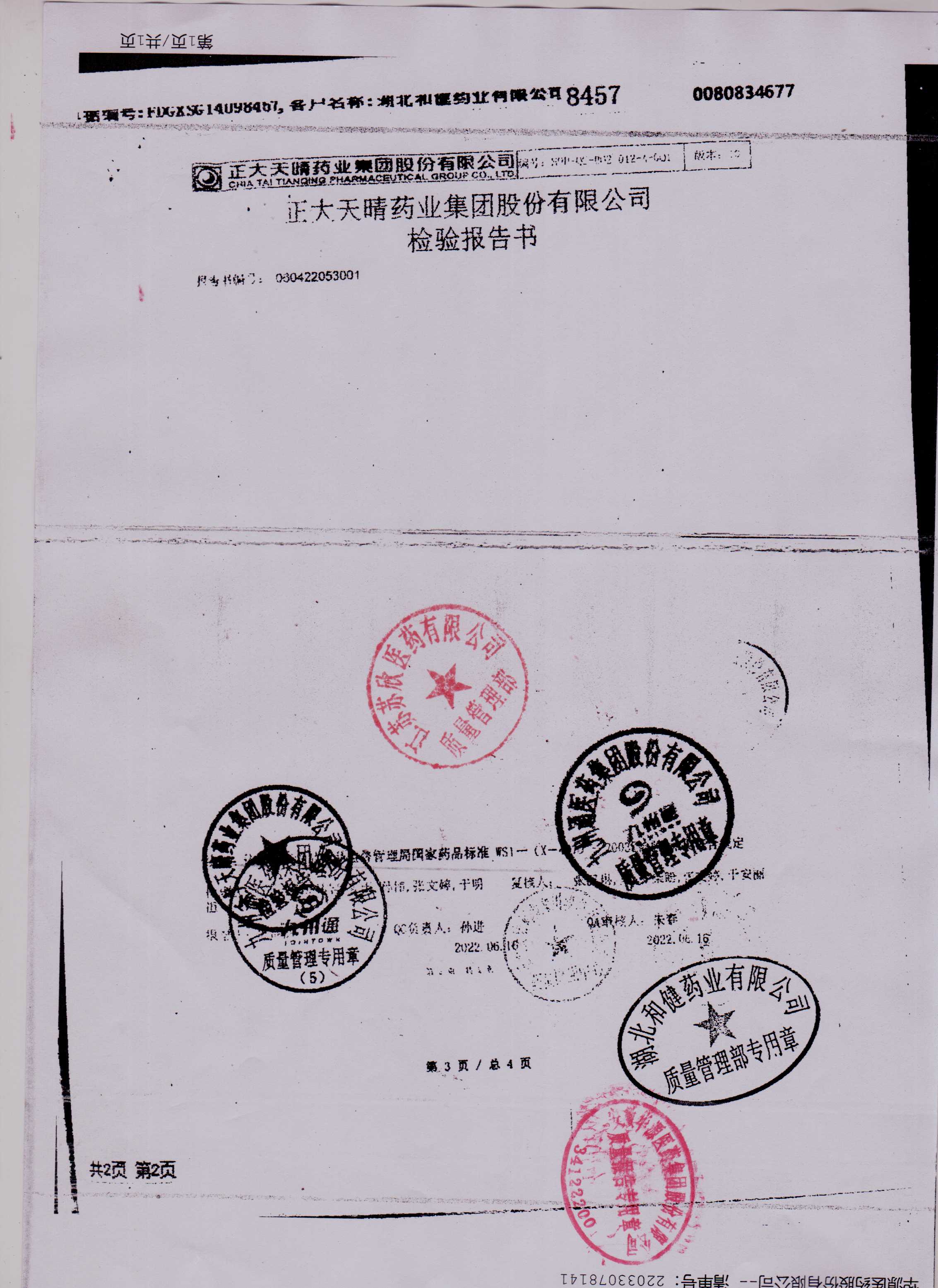 >> 检验报告书 >> 检验报告书