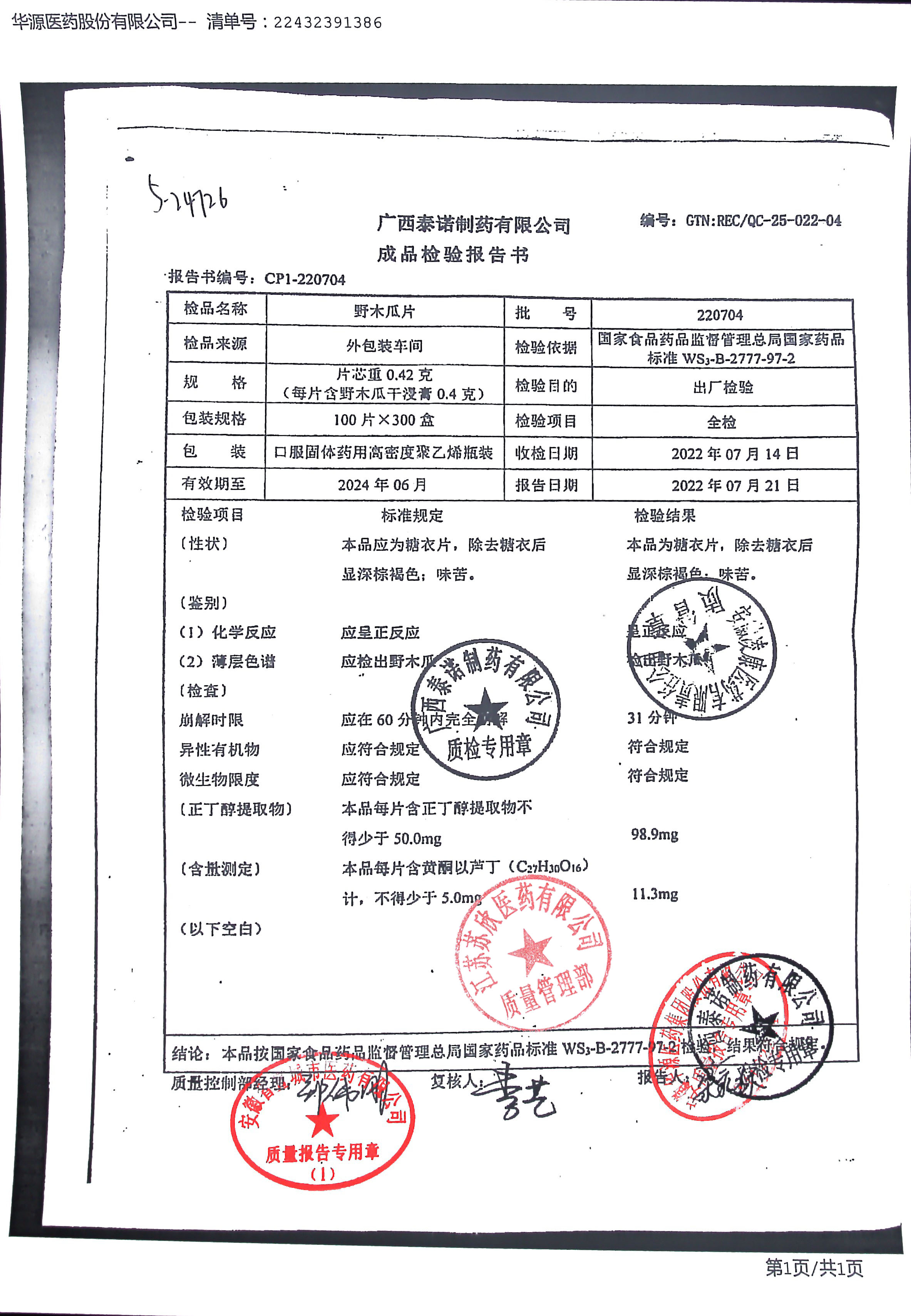 >> 检验报告书 >> 检验报告书
