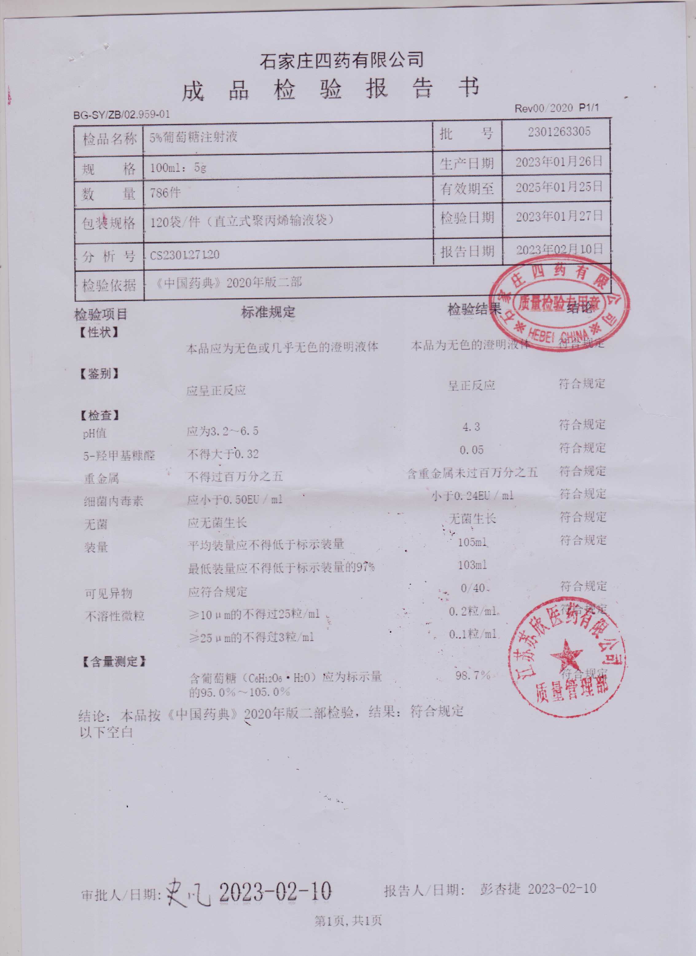 5%葡萄糖注射液2301263305