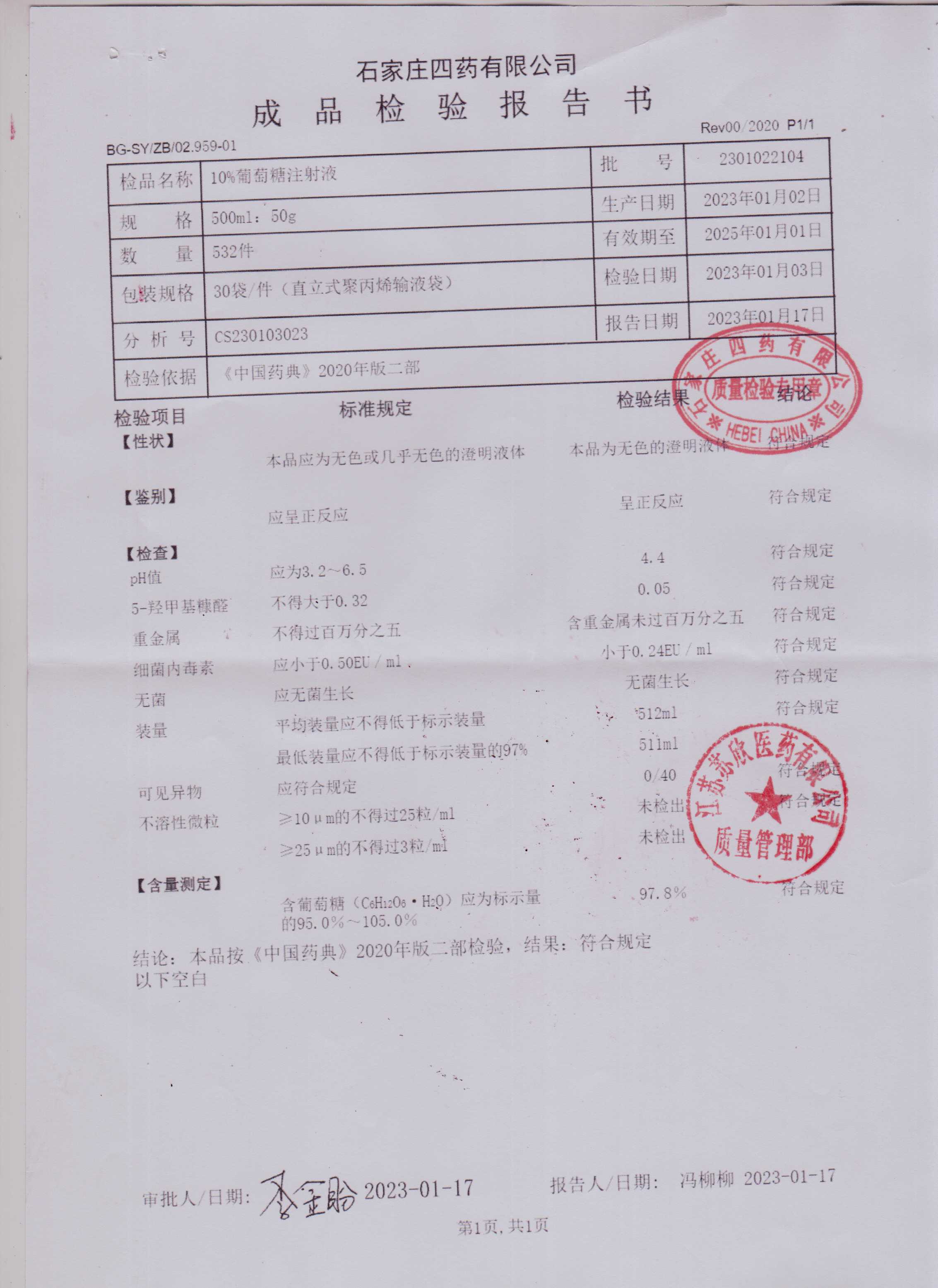 10%葡萄糖注射液2301022104