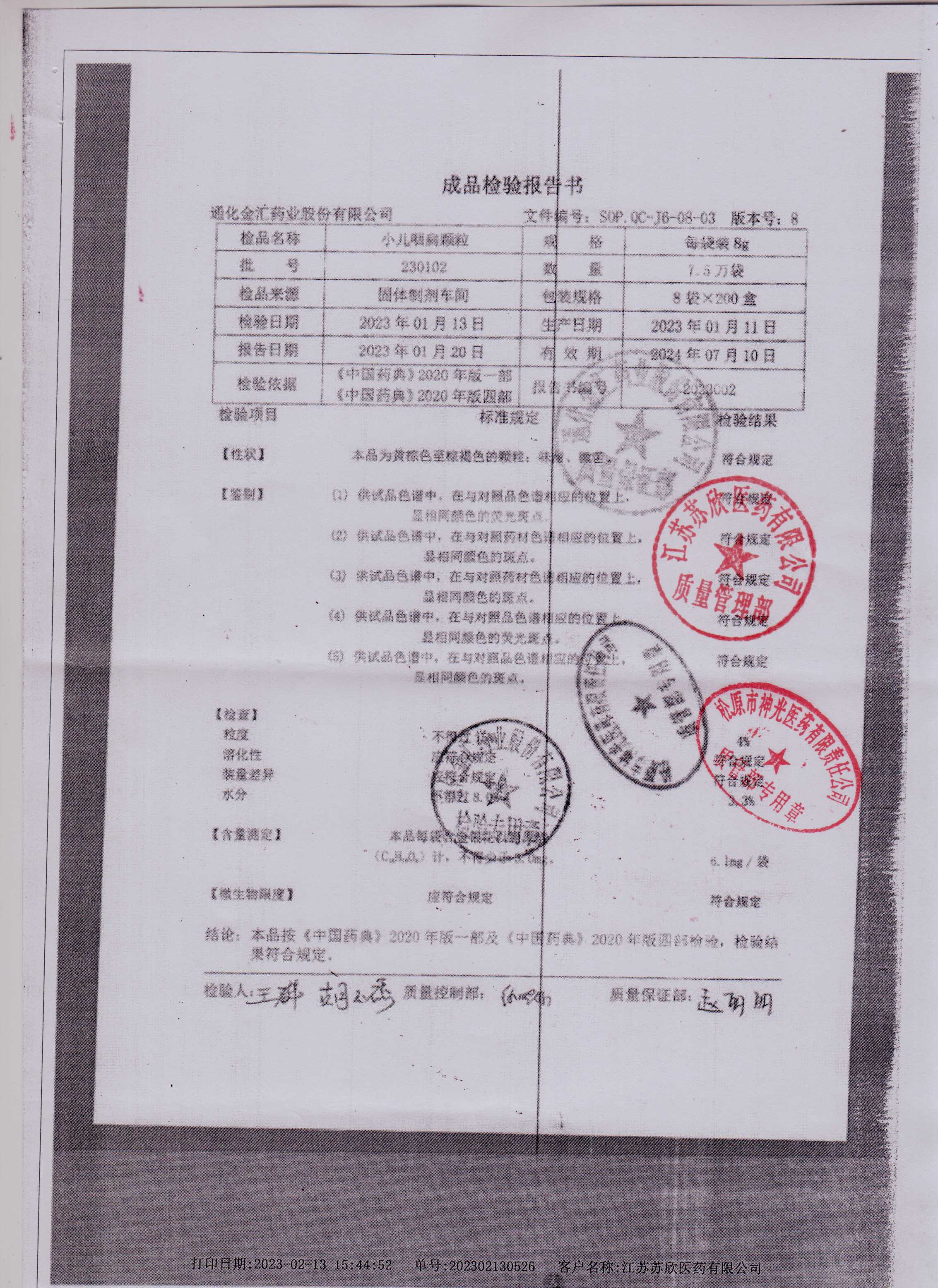小儿咽扁颗粒230102