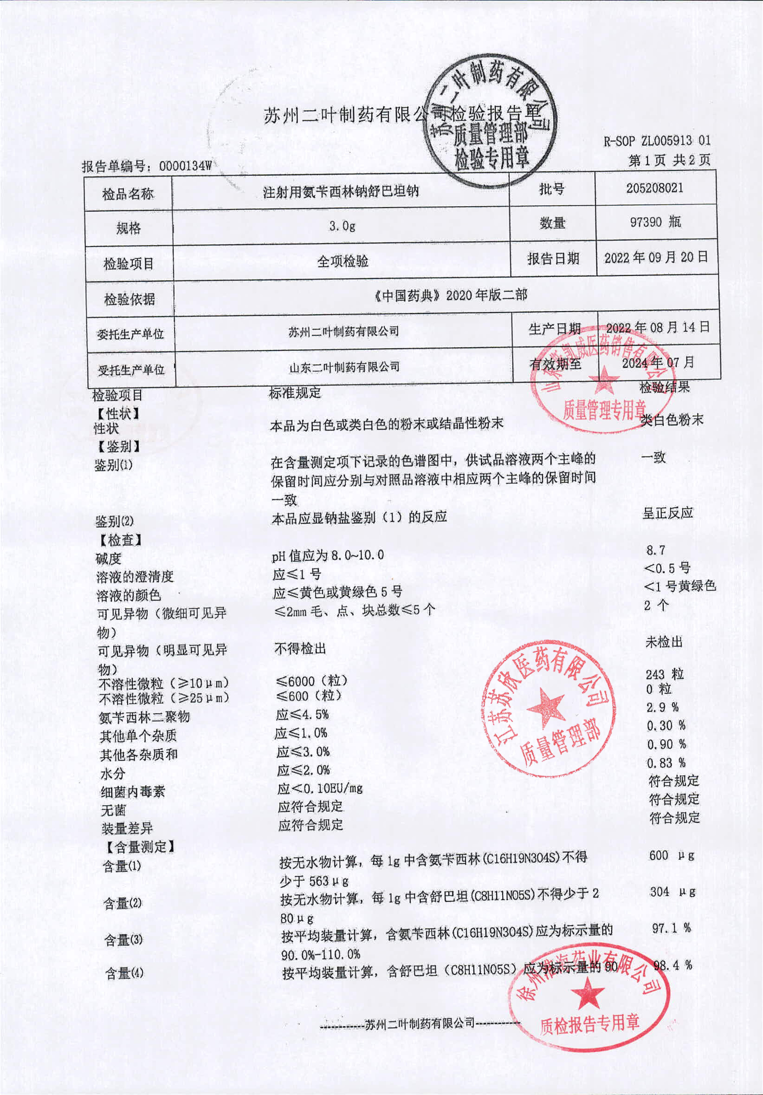 注射用氨苄西林钠舒巴坦钠205208021(1)