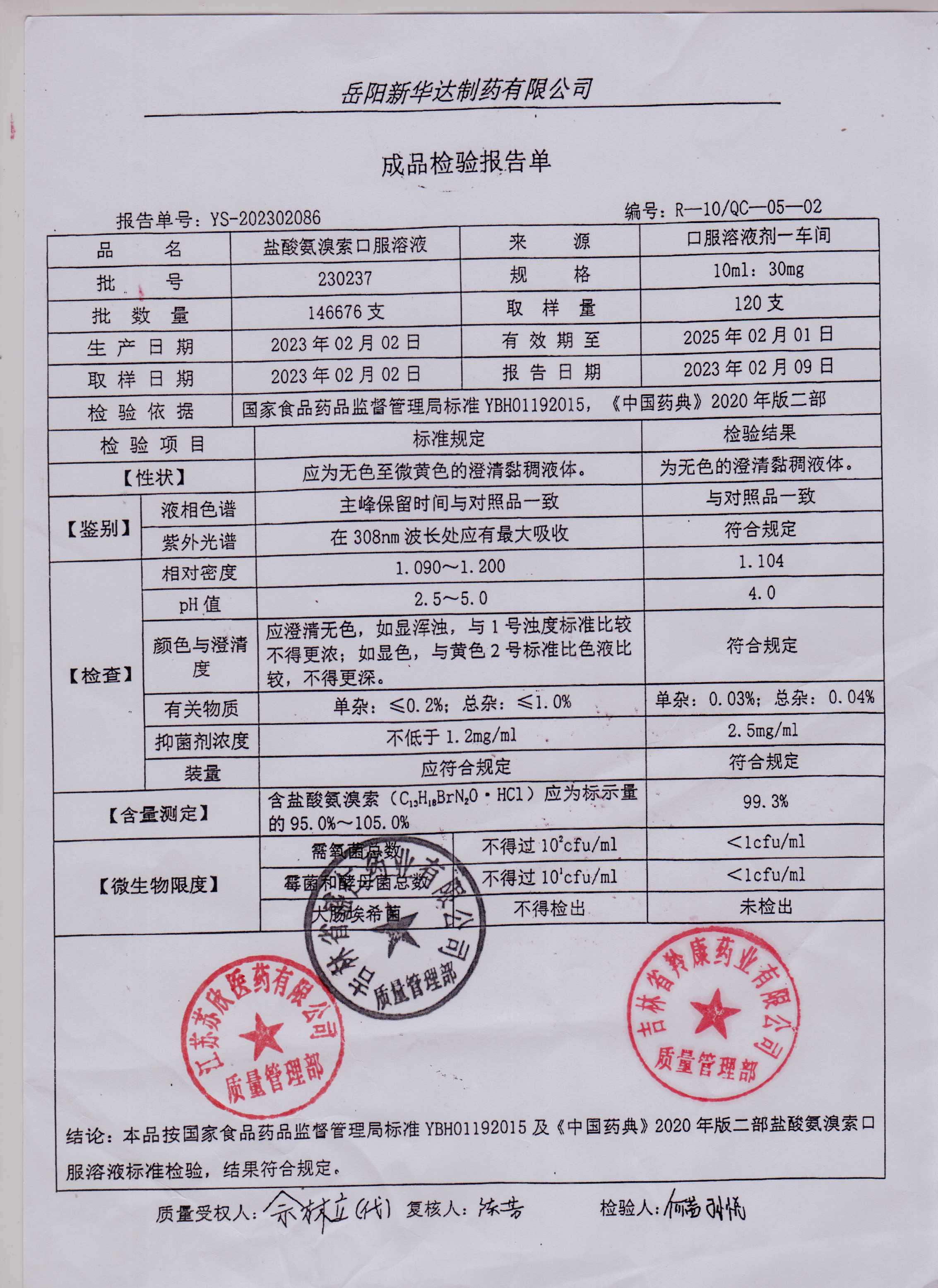 盐酸氨溴索口服液230237