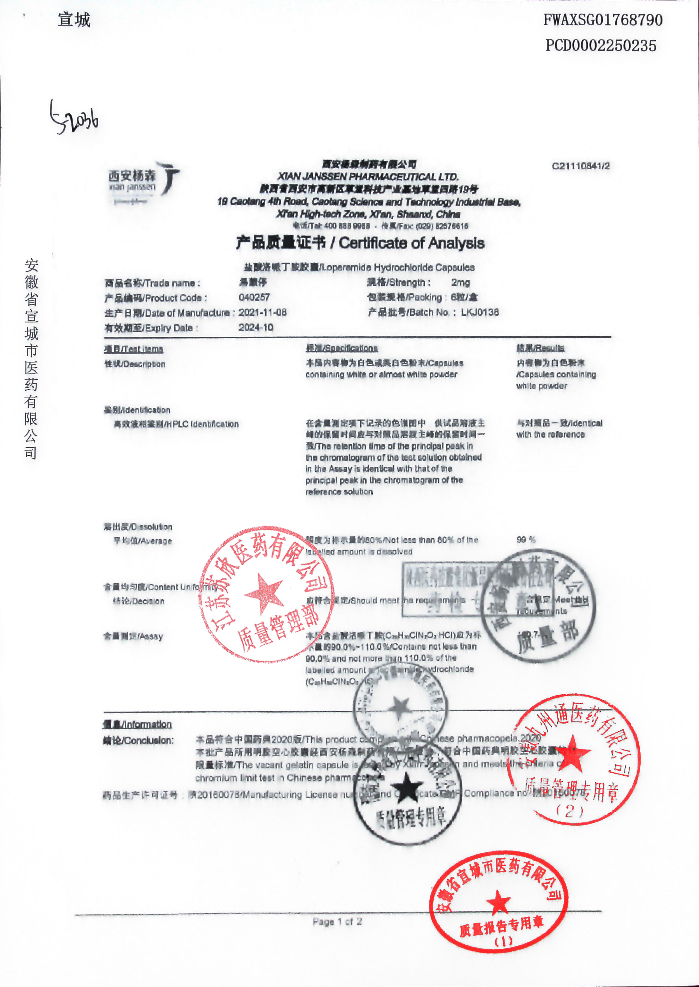 (易蒙停胶囊)盐酸洛哌丁胺胶囊LKJ0138(1)