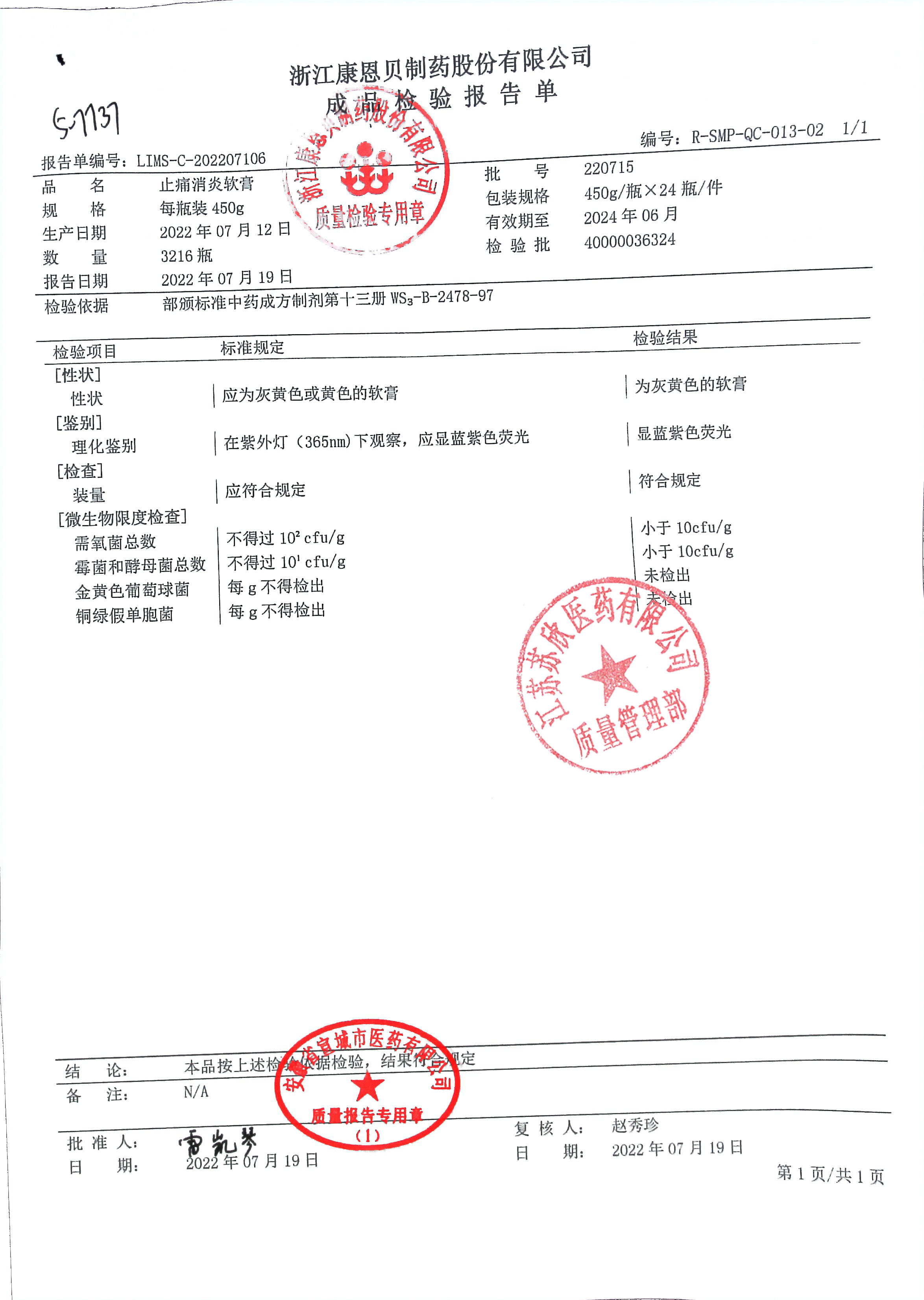 止痛消炎软膏220715