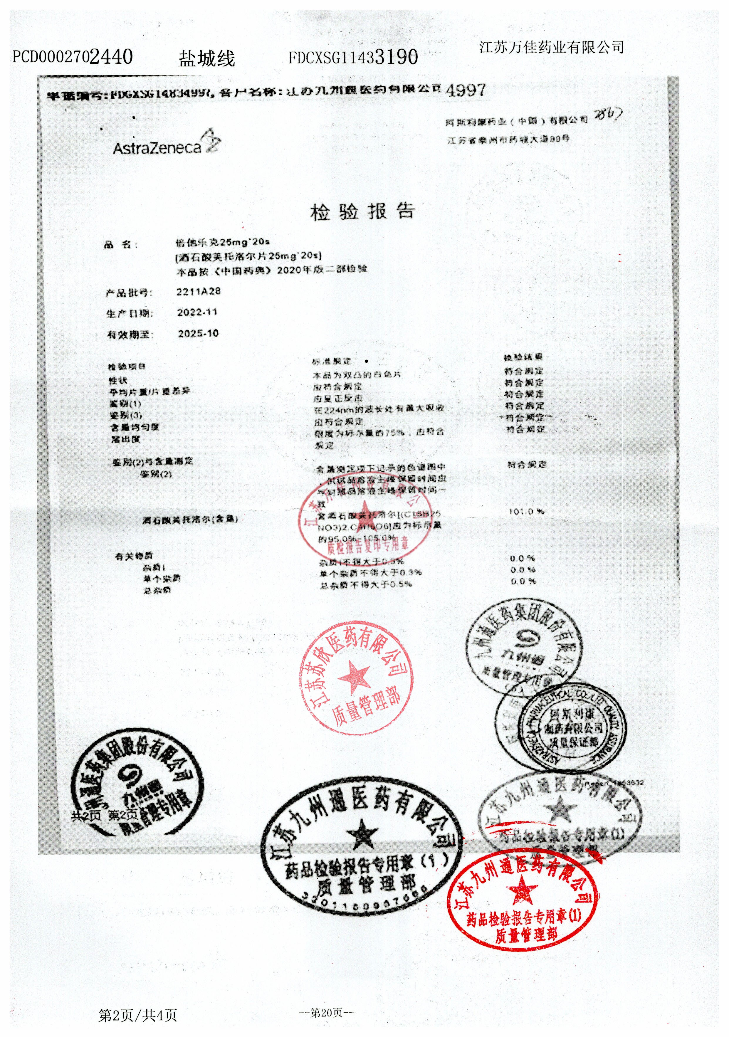 酒石酸美托洛尔片(倍他乐克)2211A28(1)