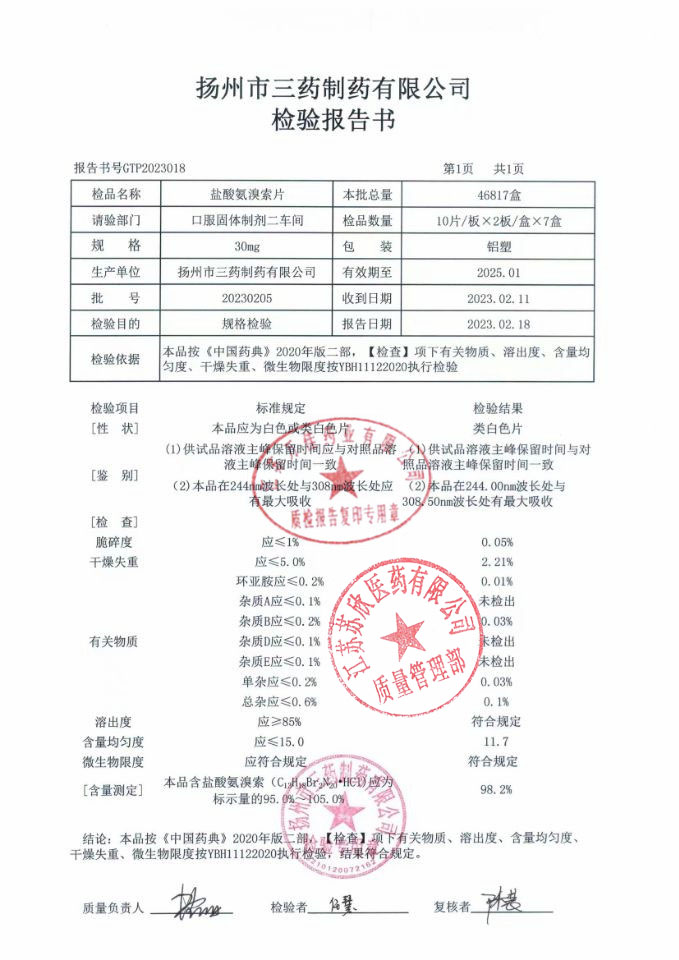 盐酸氨溴索片(双倡)20230205