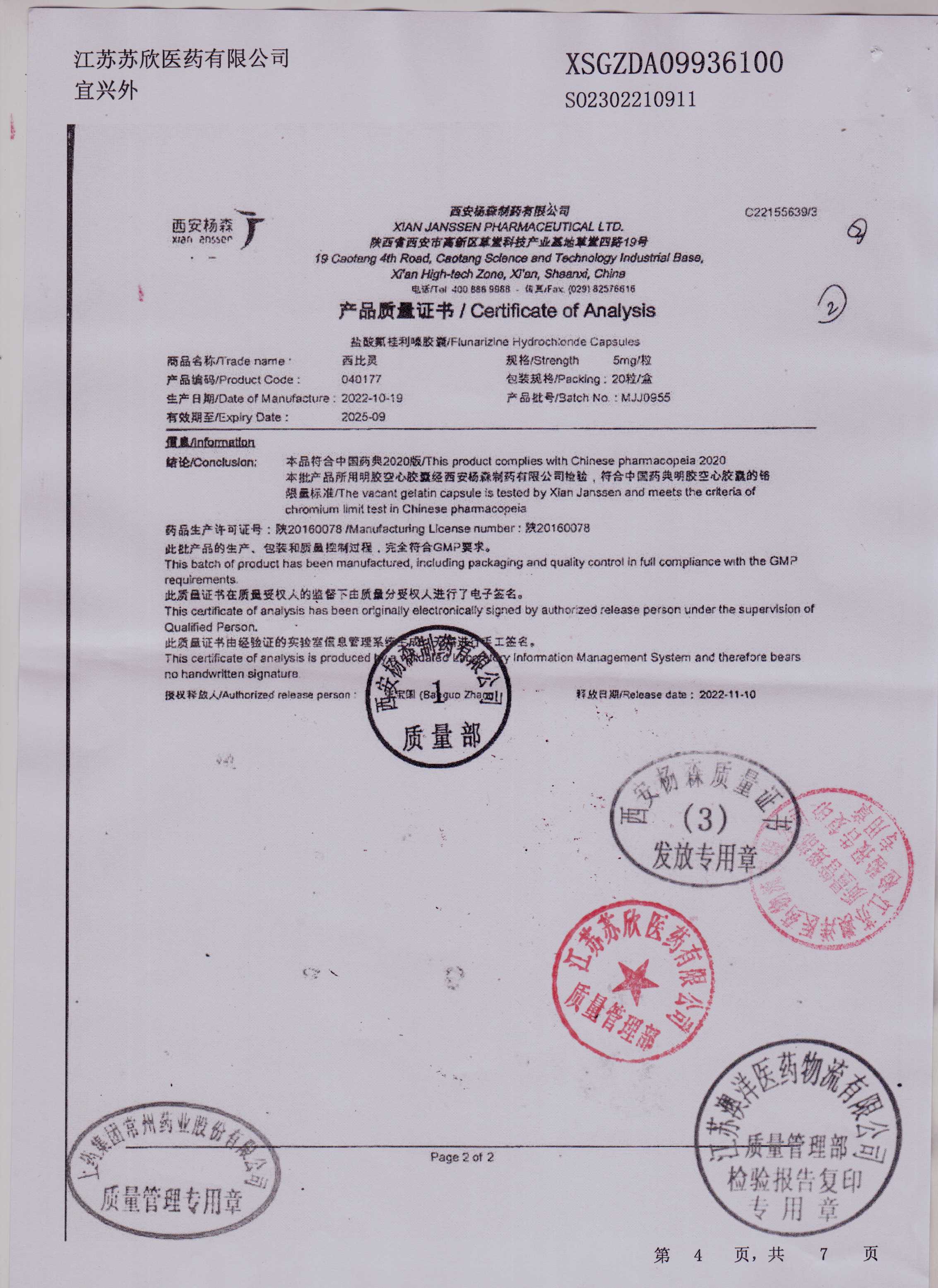 盐酸氟桂利嗪胶囊MJJ0955(2)