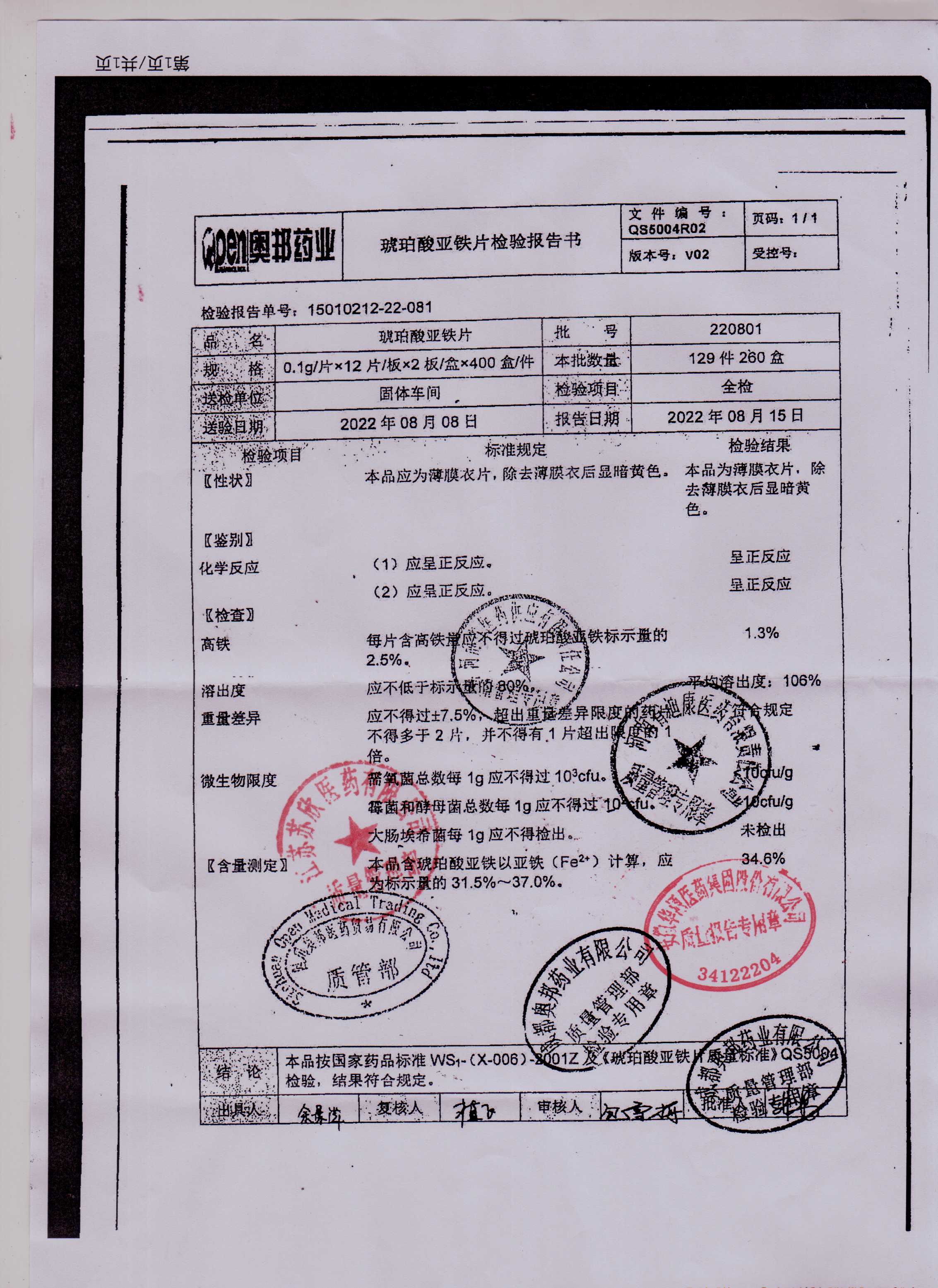 琥珀酸亚铁片220801