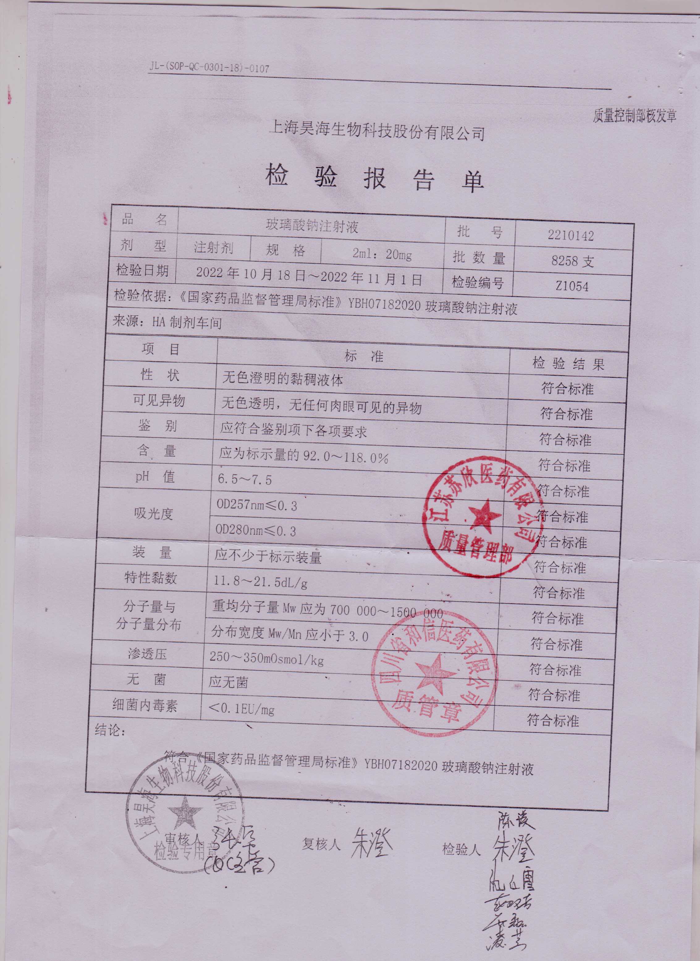 玻璃酸钠注射液2210142