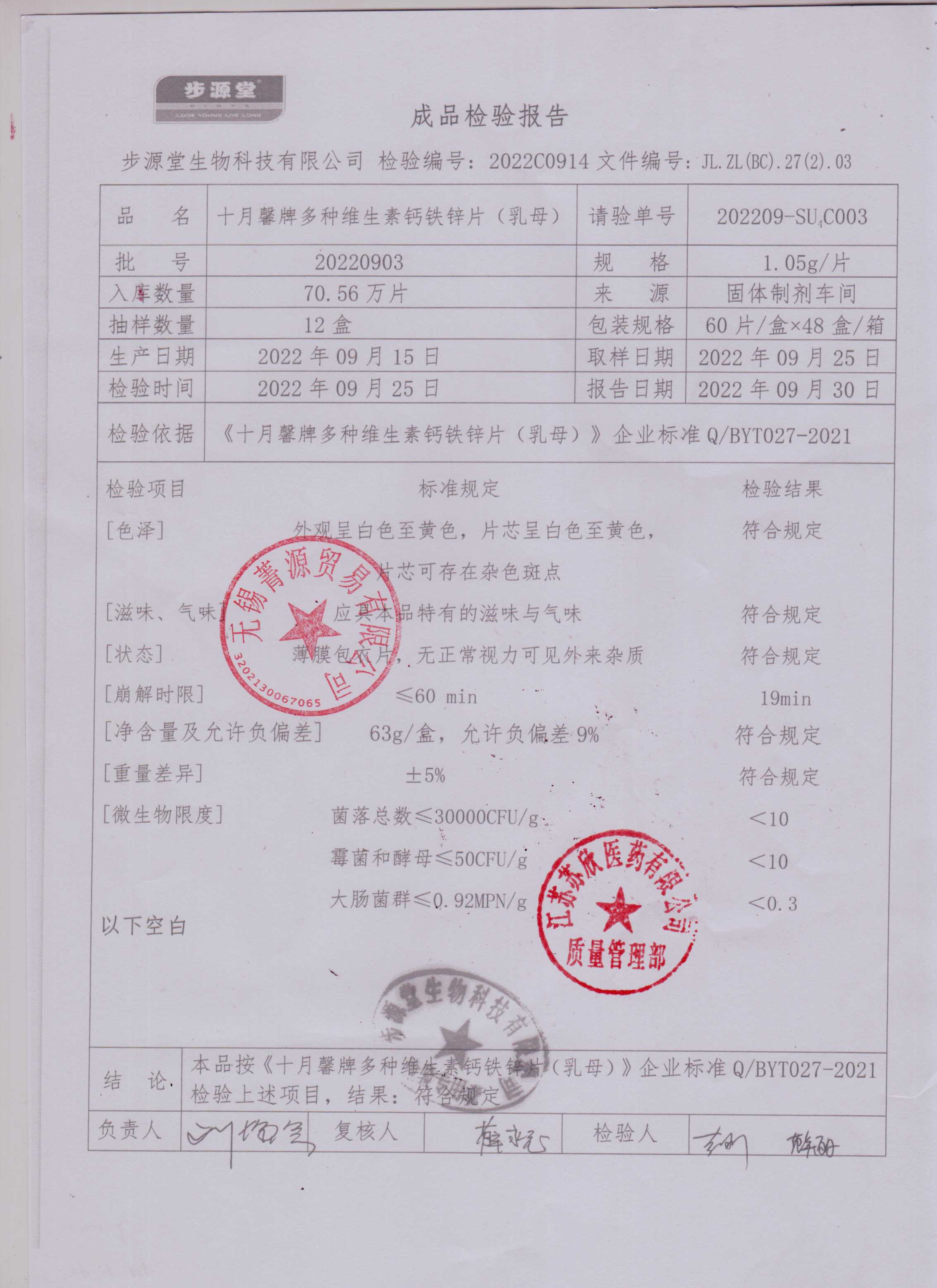 十月馨牌多种维生素钙铁锌片(乳母)20220903