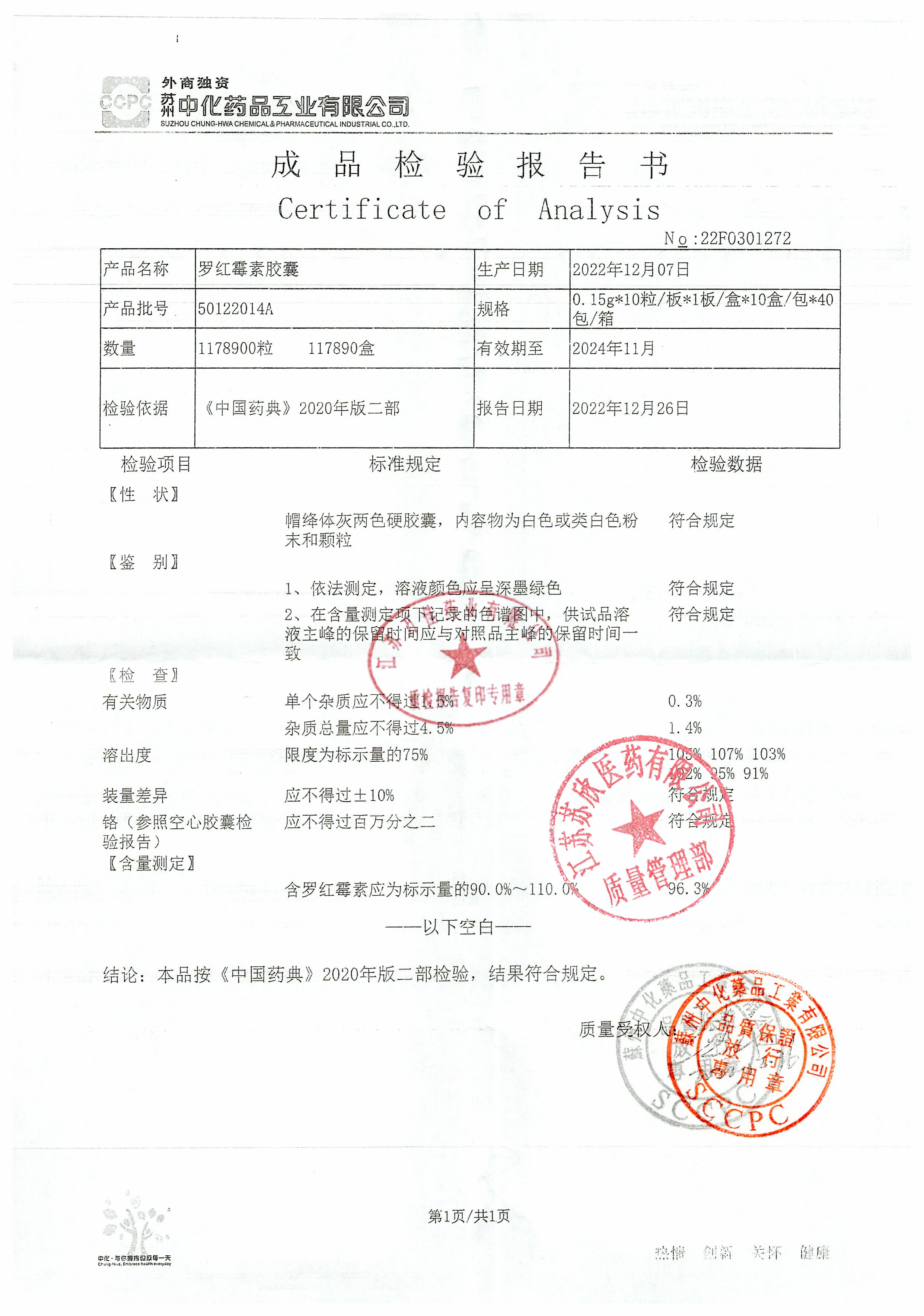 罗红霉素胶囊50122014A