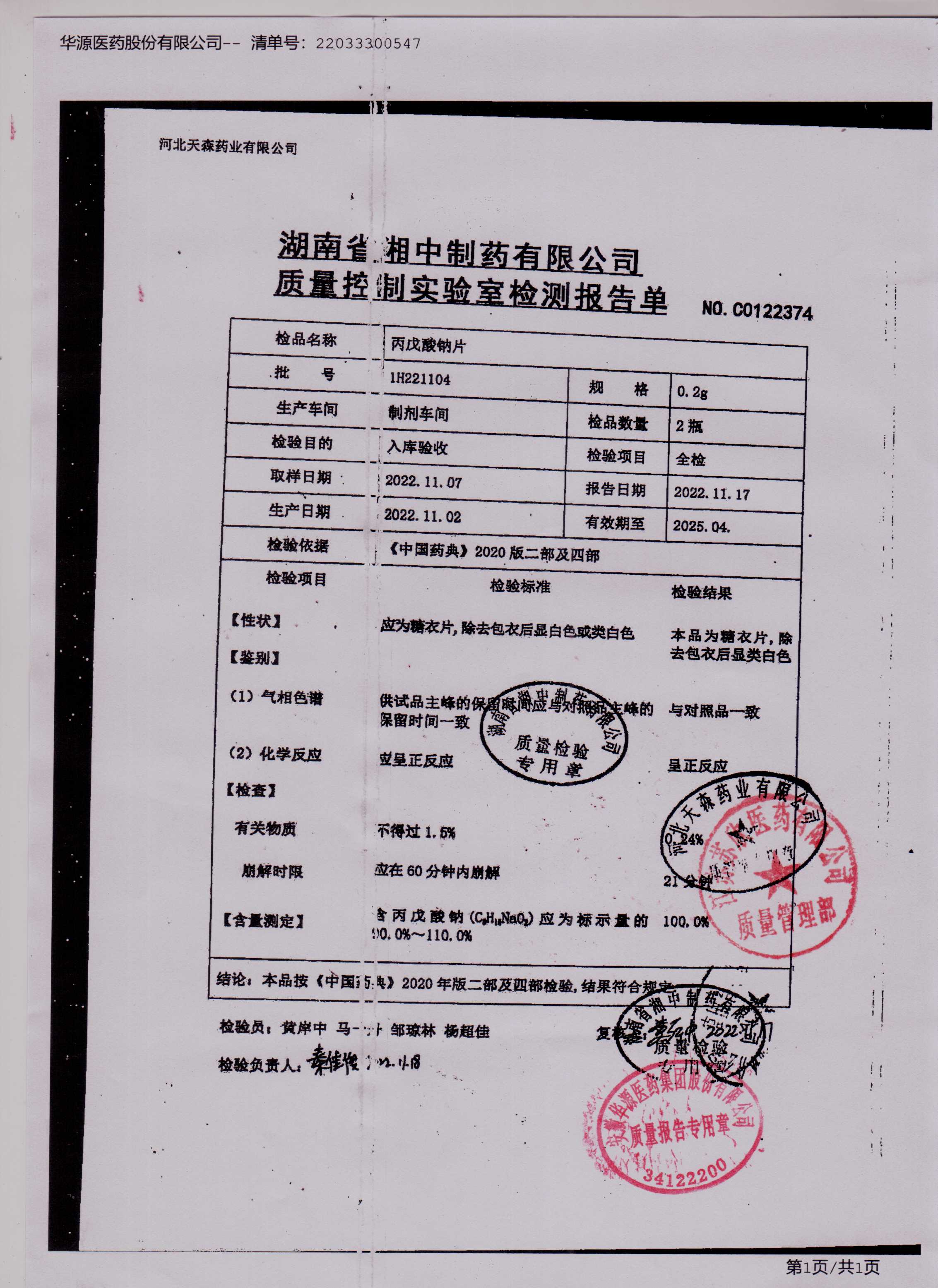 丙戊酸钠片1H221104