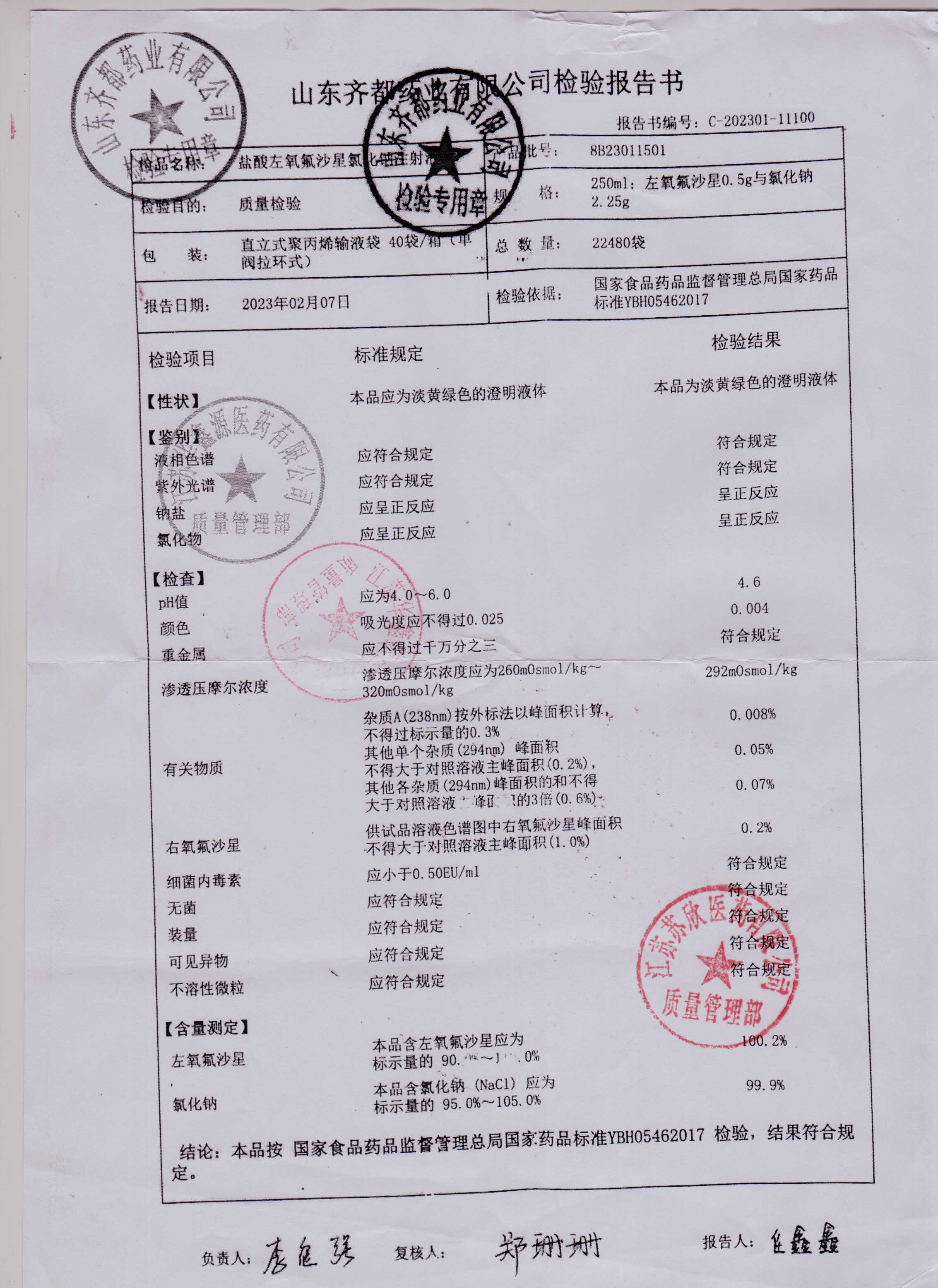盐酸左氧氟沙星氯化钠注射液8B23011501