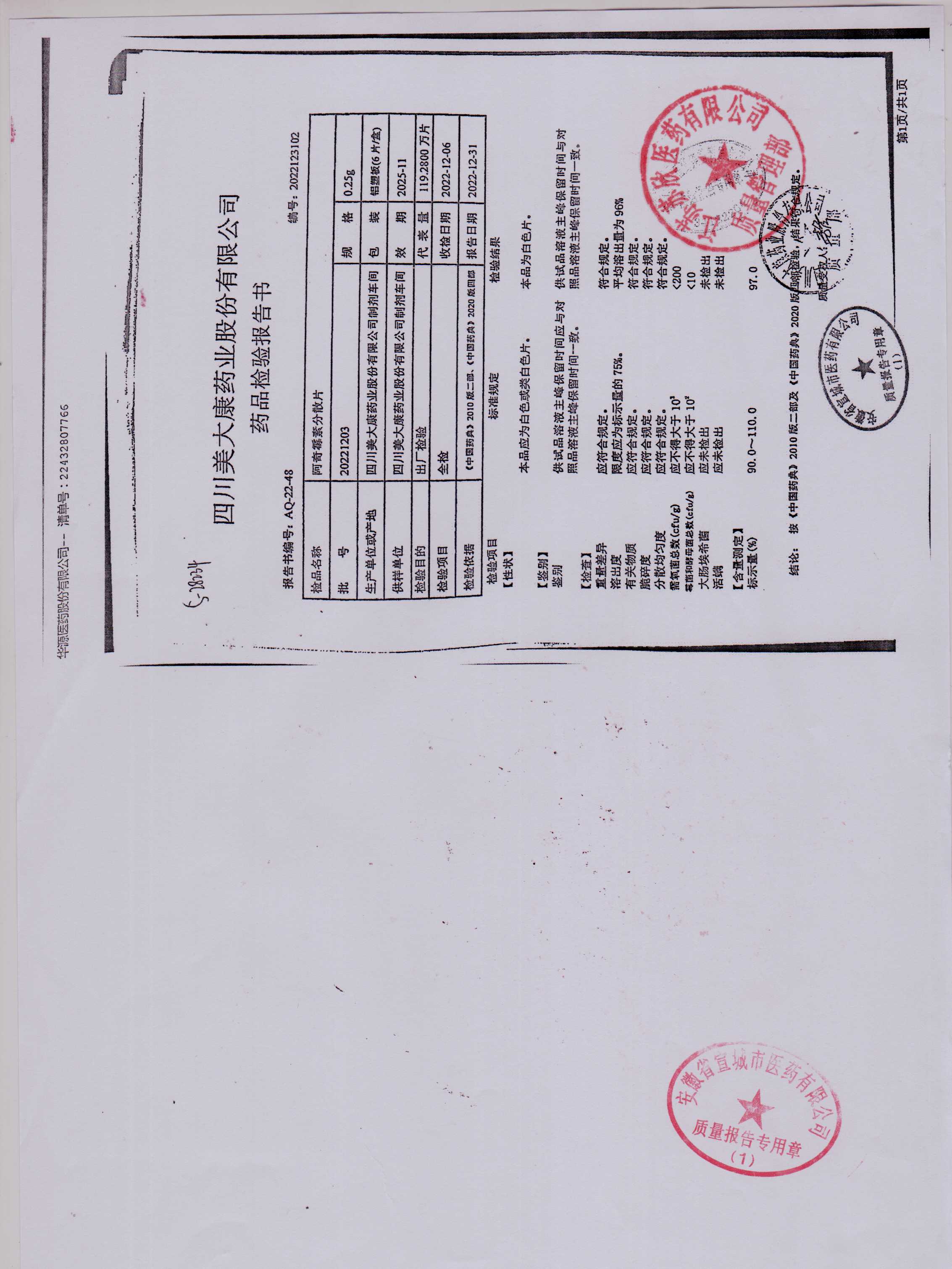 阿奇霉素分散片20221203