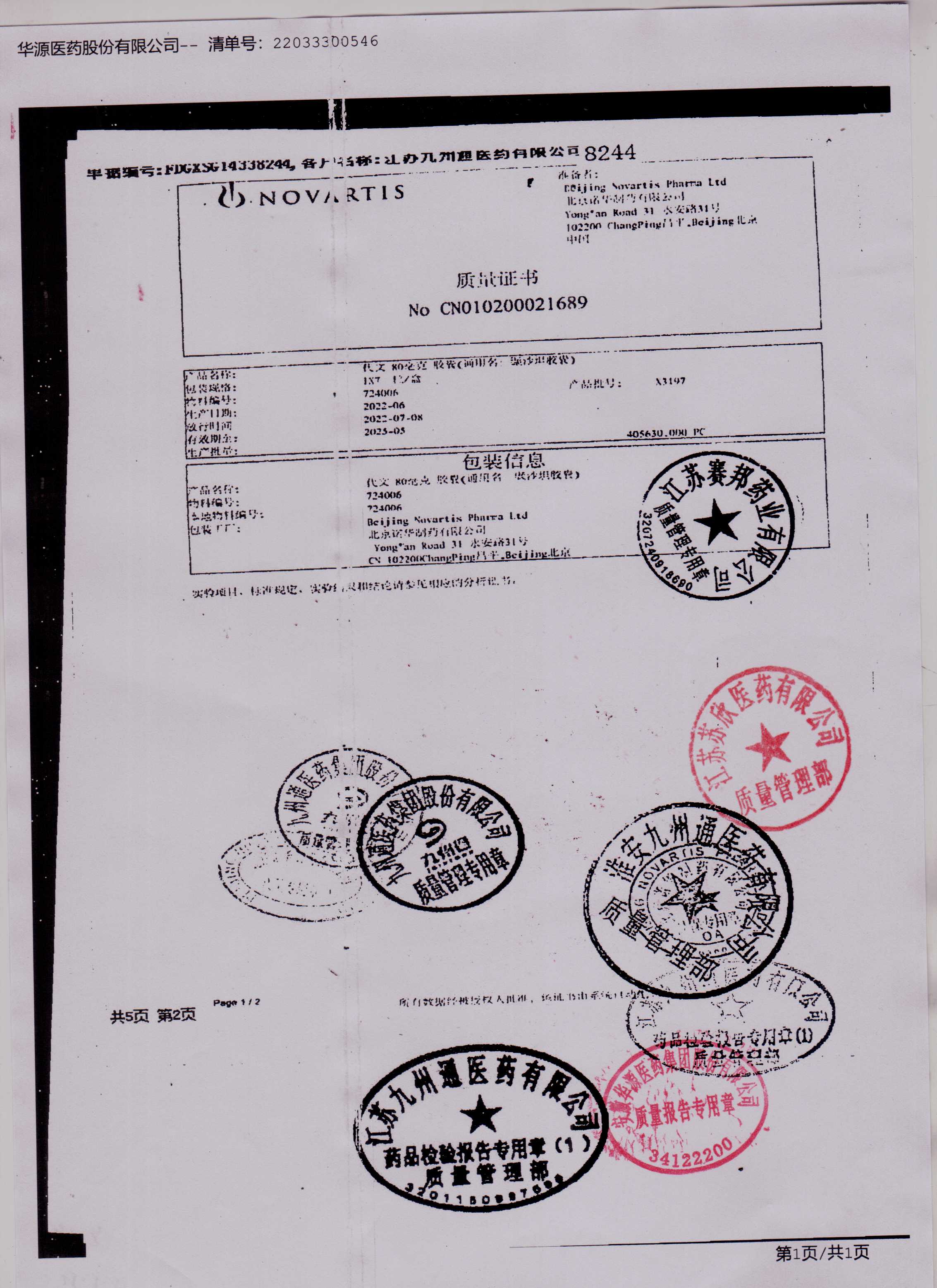 缬沙坦胶囊X3197(5)