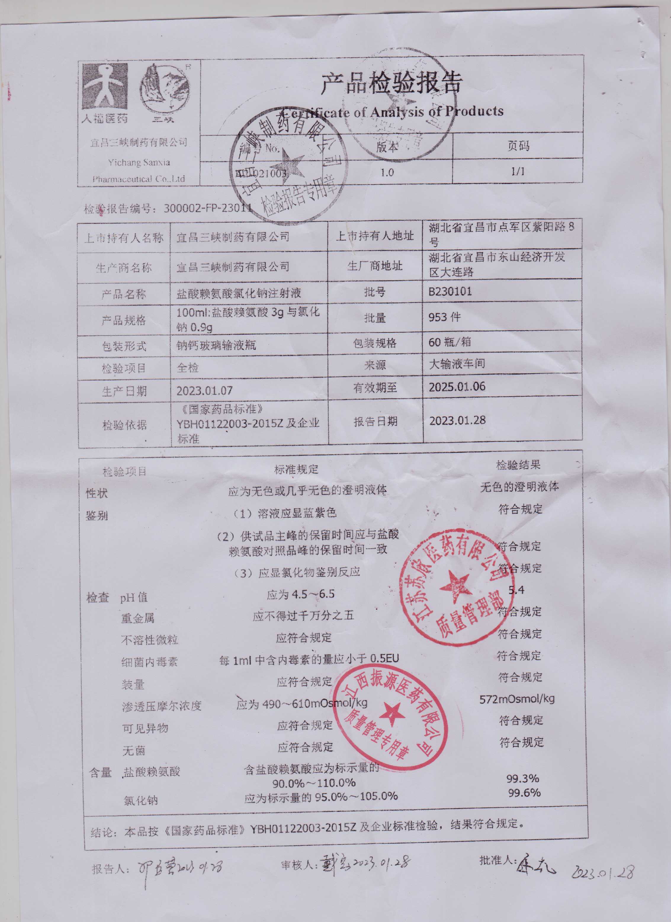盐酸赖氨酸氯化钠注射液B230101