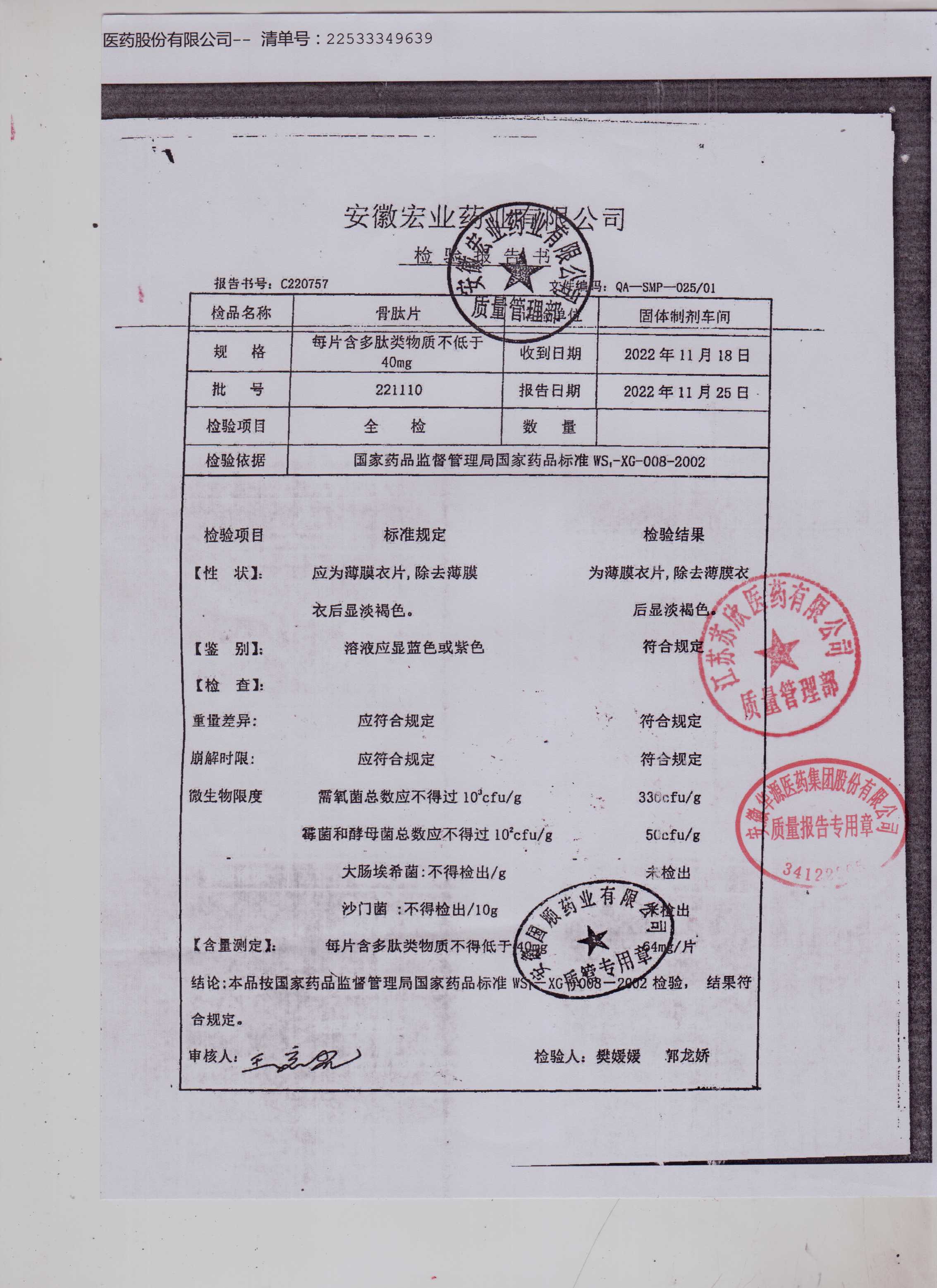 骨肽片221110