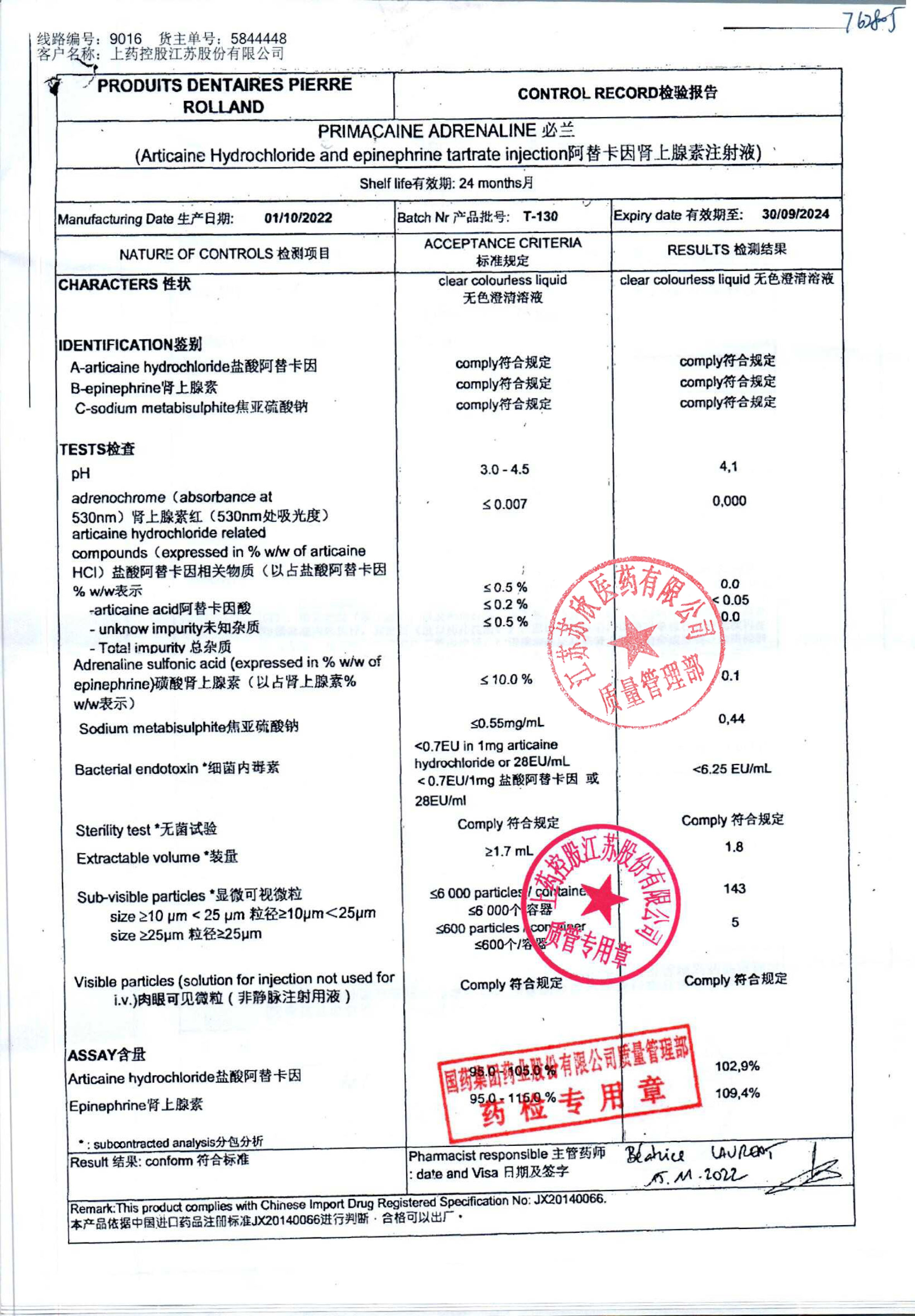 阿替卡因肾上腺素注射液(必兰)T-130(1)