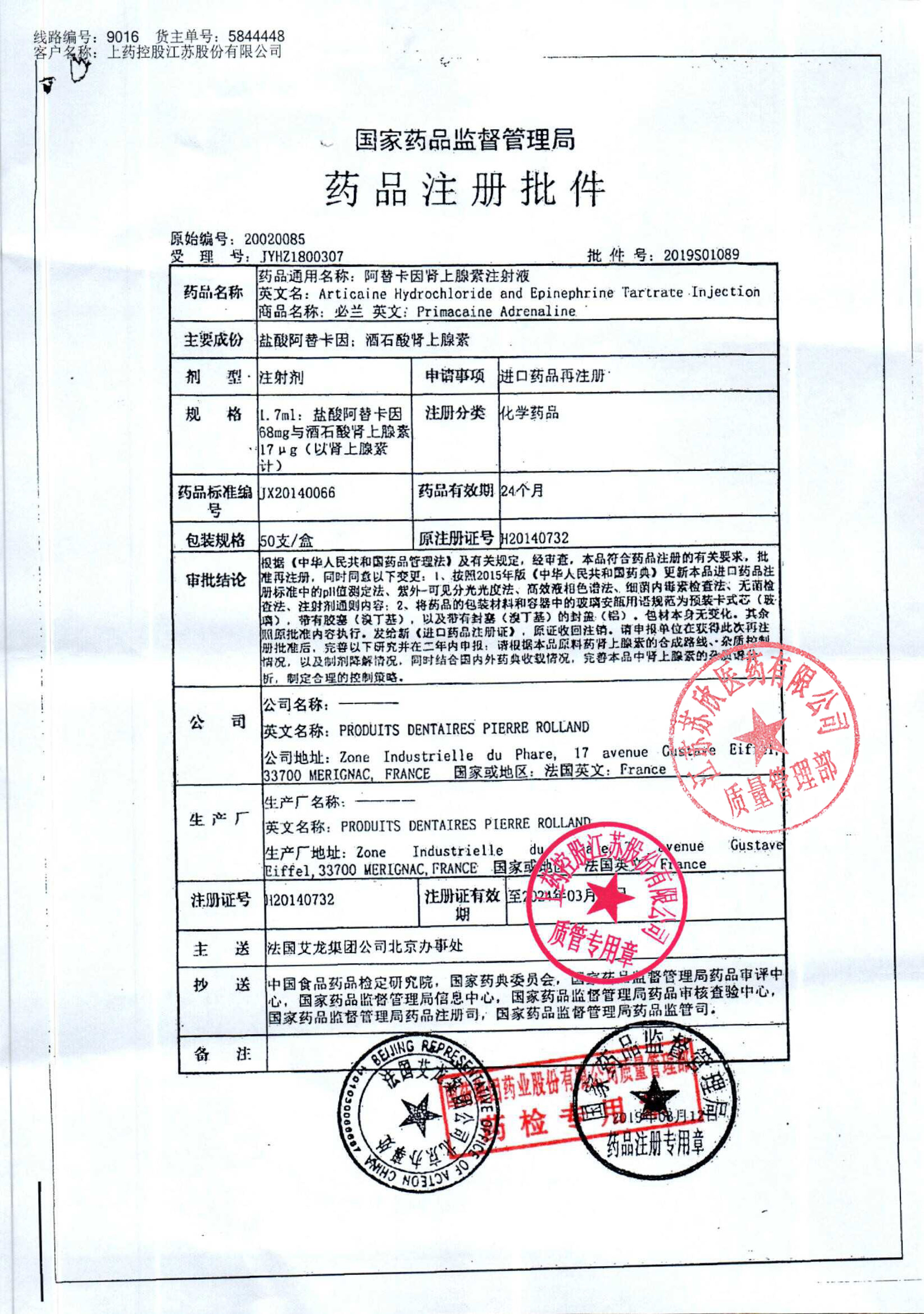 阿替卡因肾上腺素注射液(必兰)T-130(3)