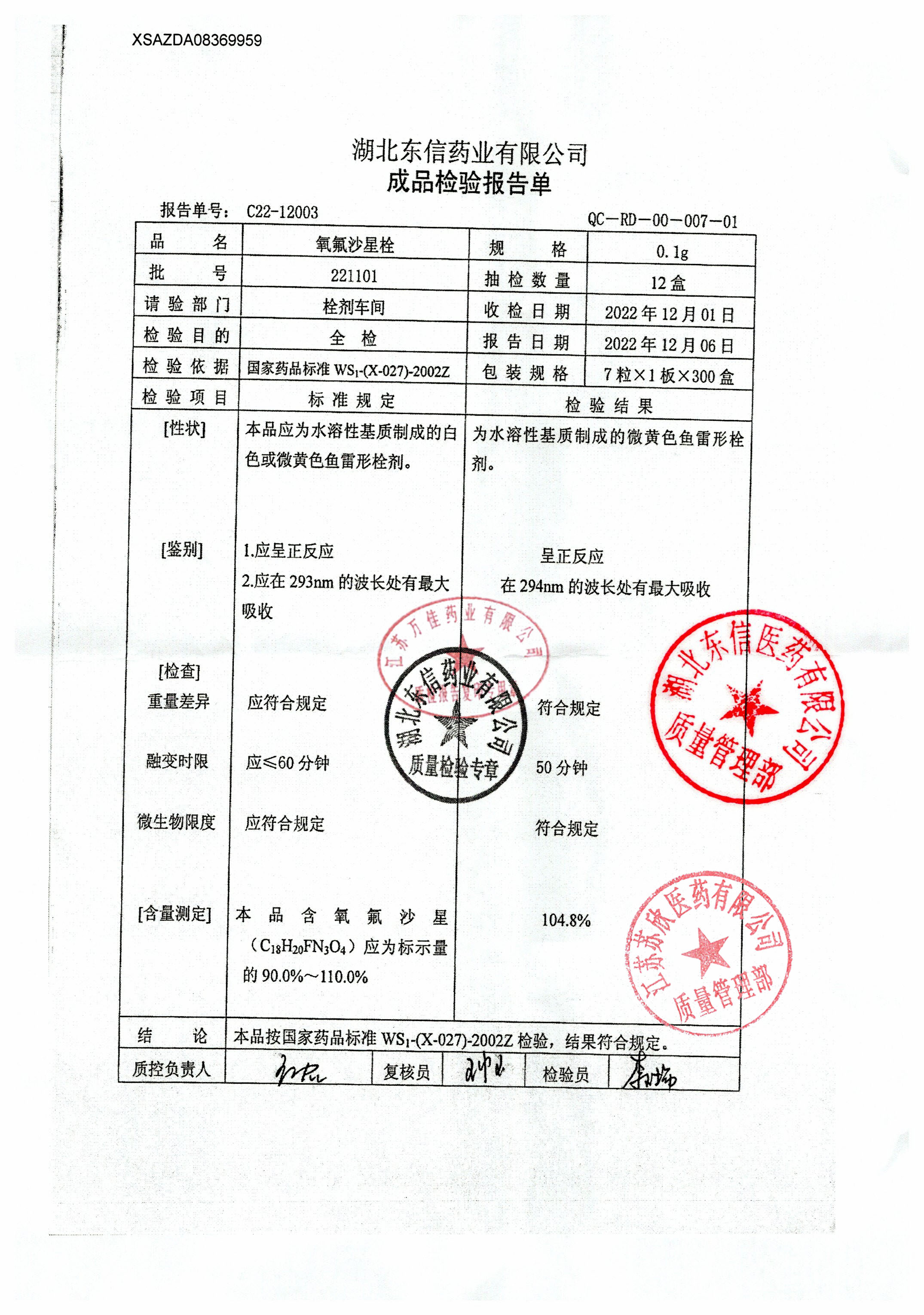 氧氟沙星栓221101