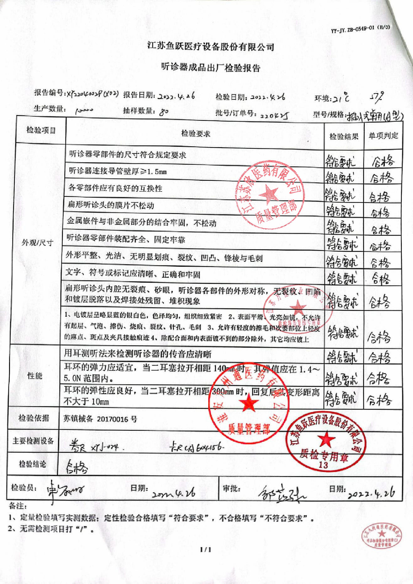 单用听诊器(插入式)220425