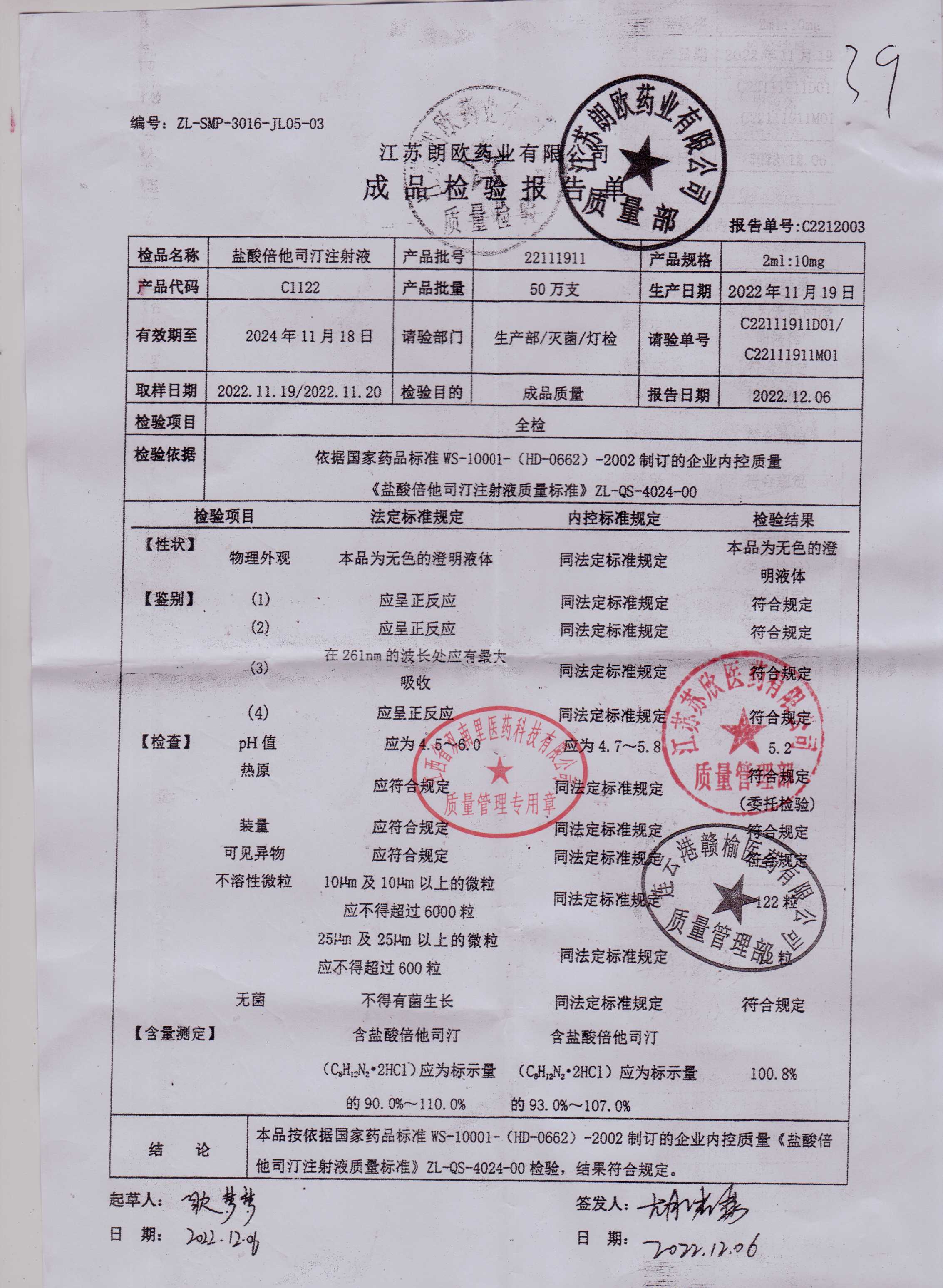 盐酸倍他司汀注射液22111911