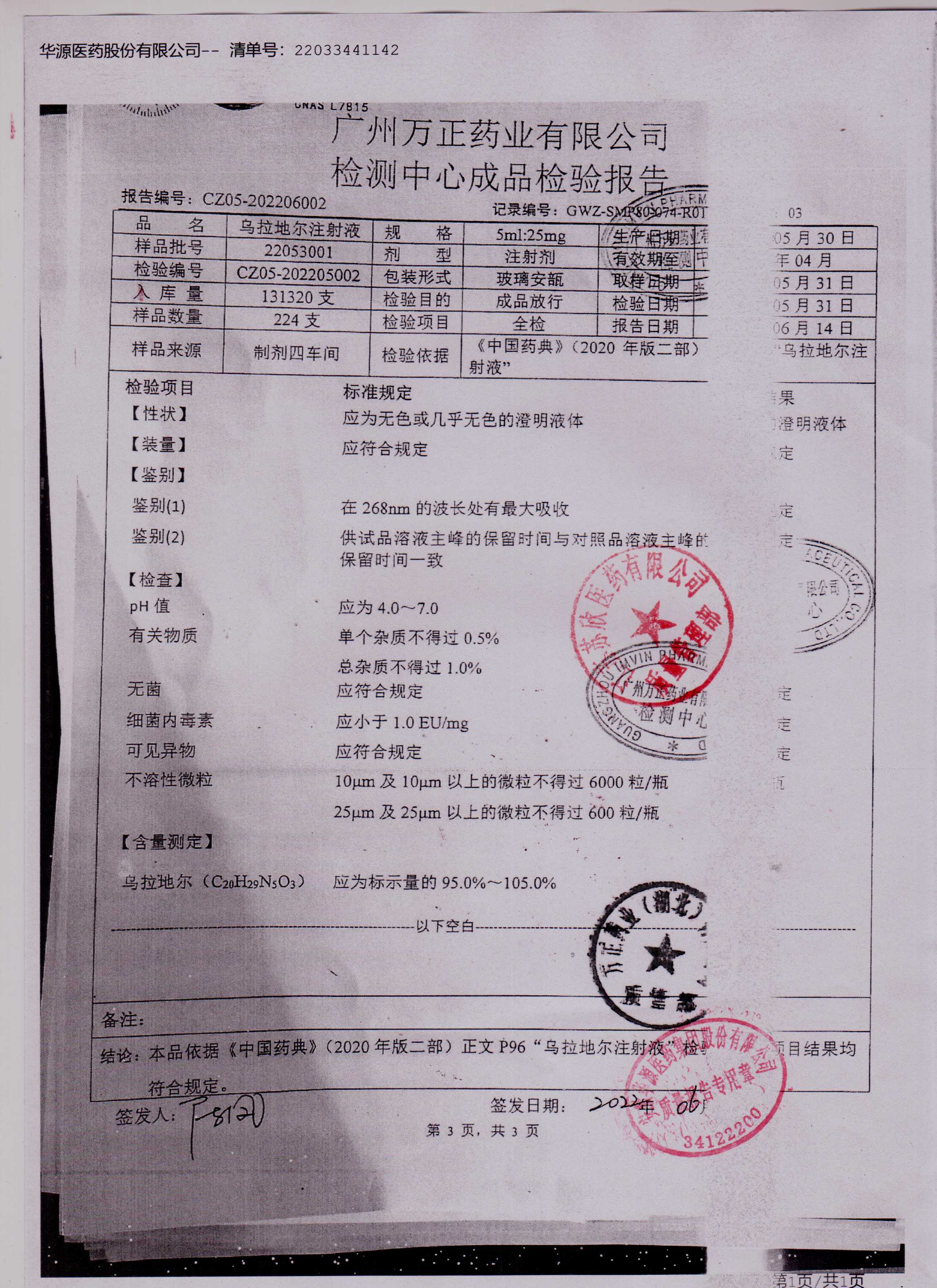 乌拉地尔注射液22053001(3)