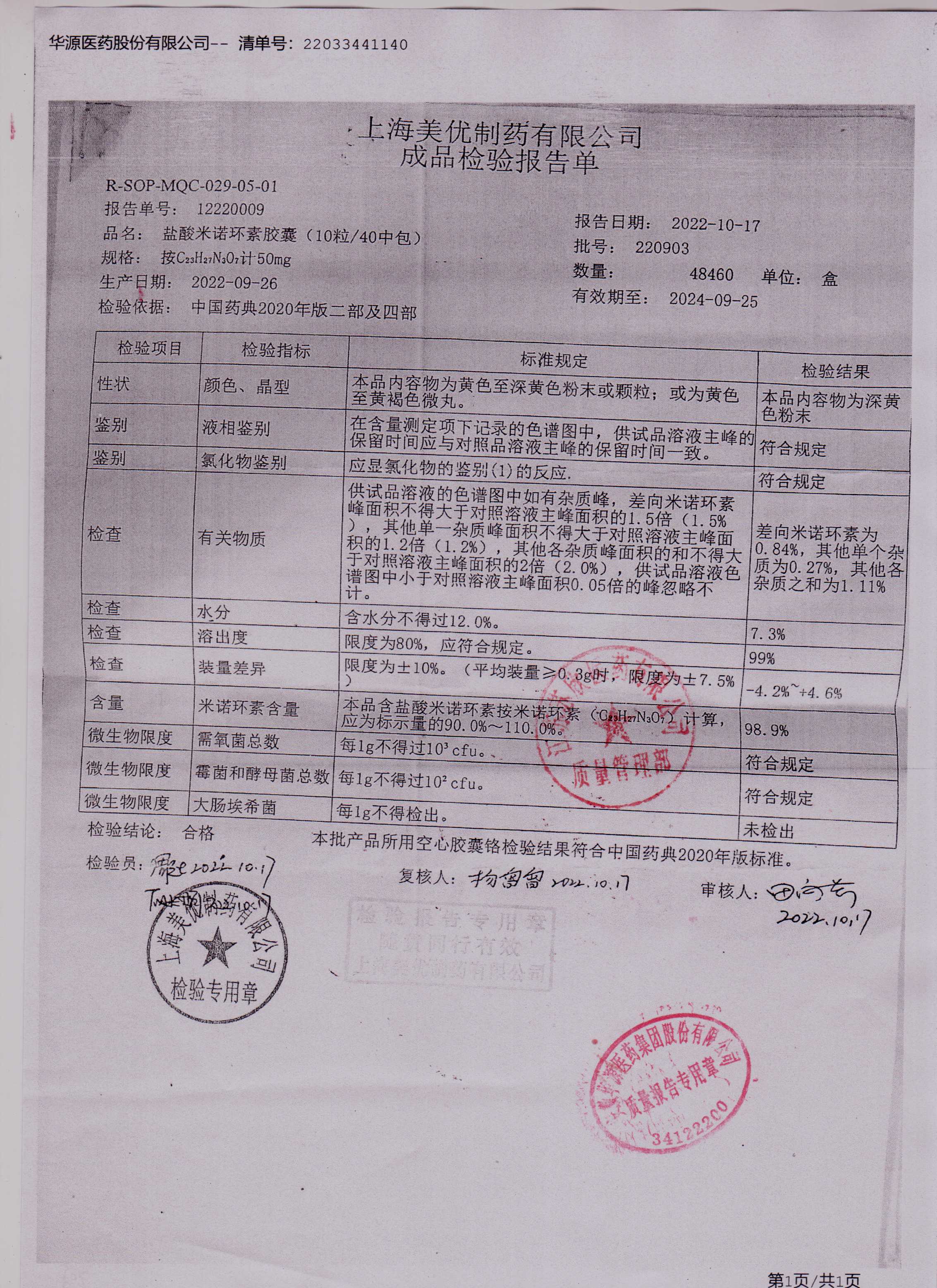 盐酸米诺环素胶囊220903
