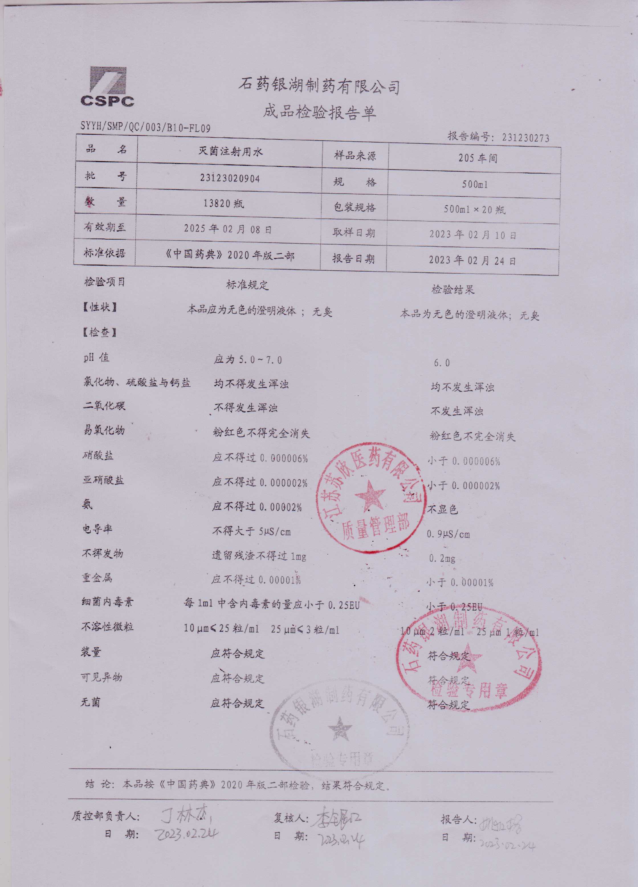灭菌注射用水23123020904