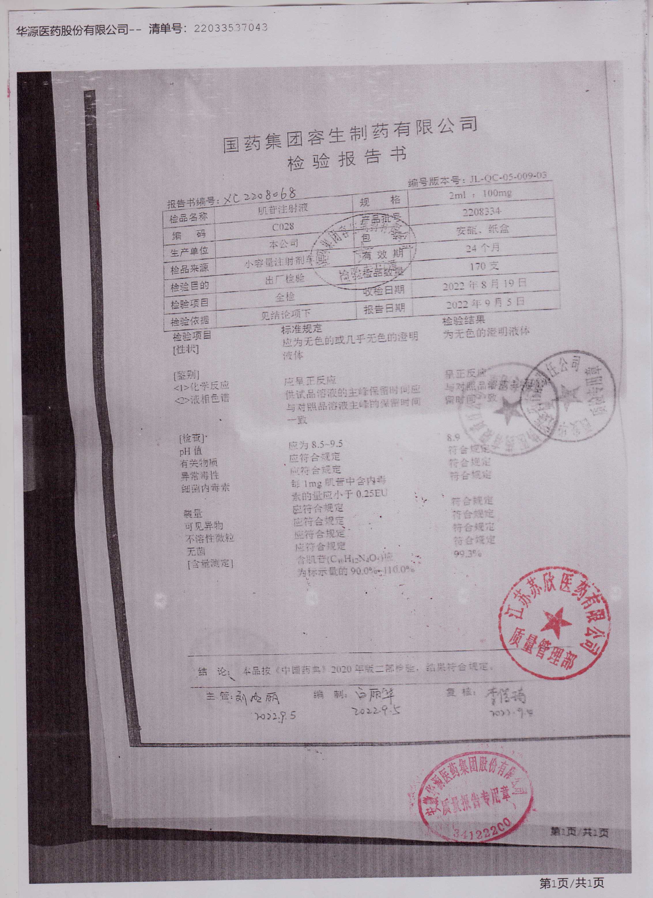 肌苷注射液2208334