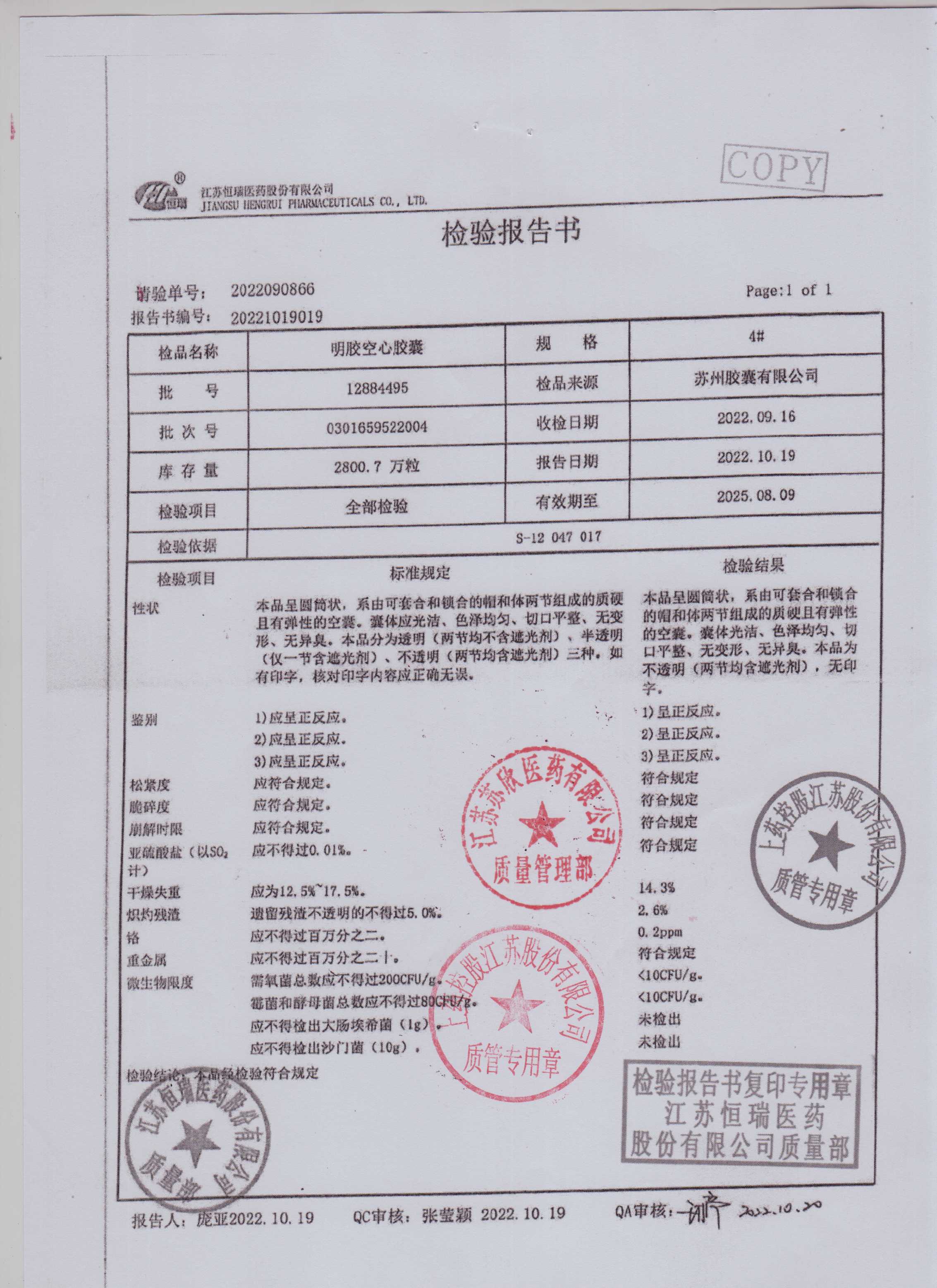 >> 检验报告书 >> 检验报告书