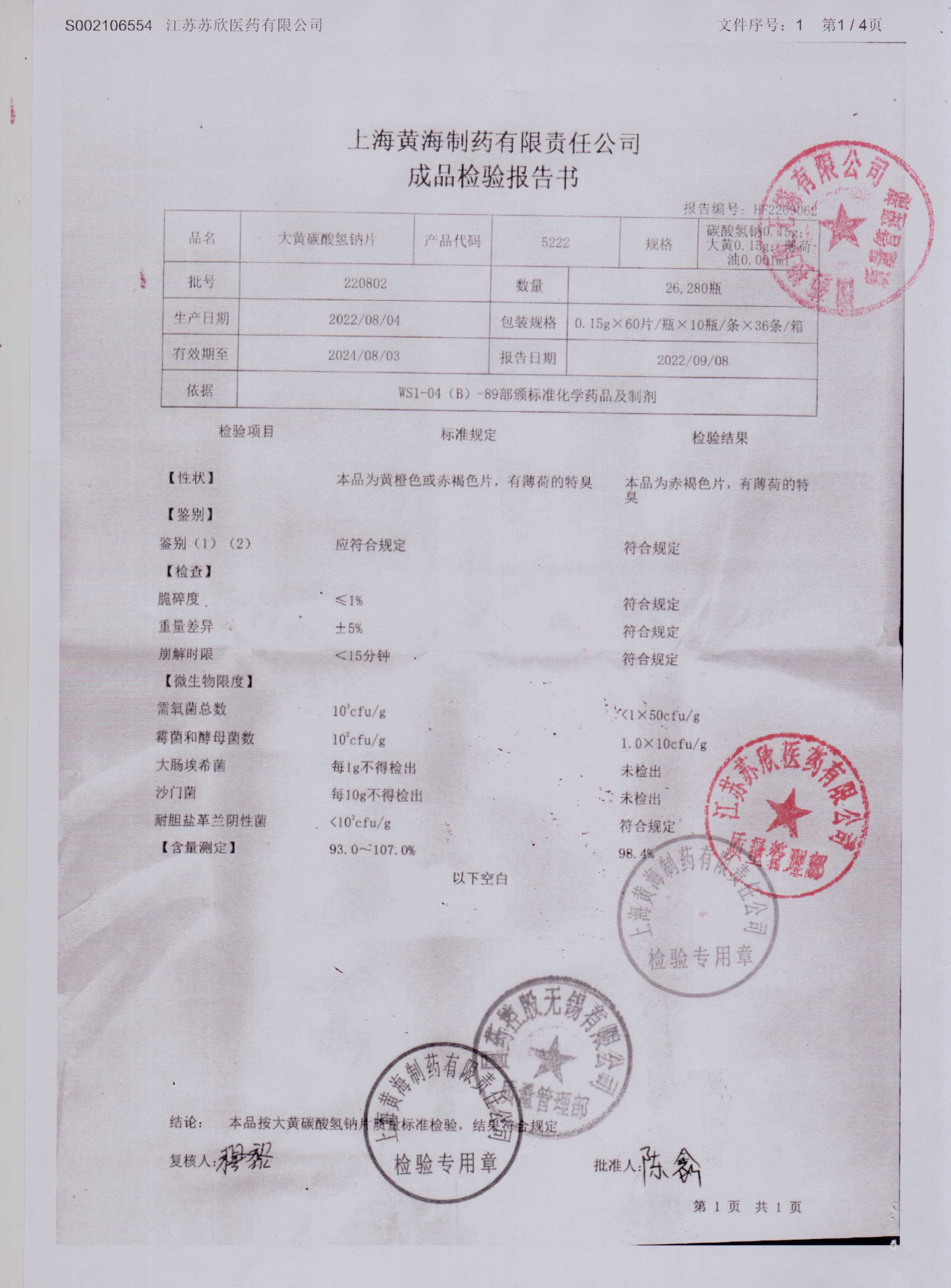 大黄碳酸氢钠片220802