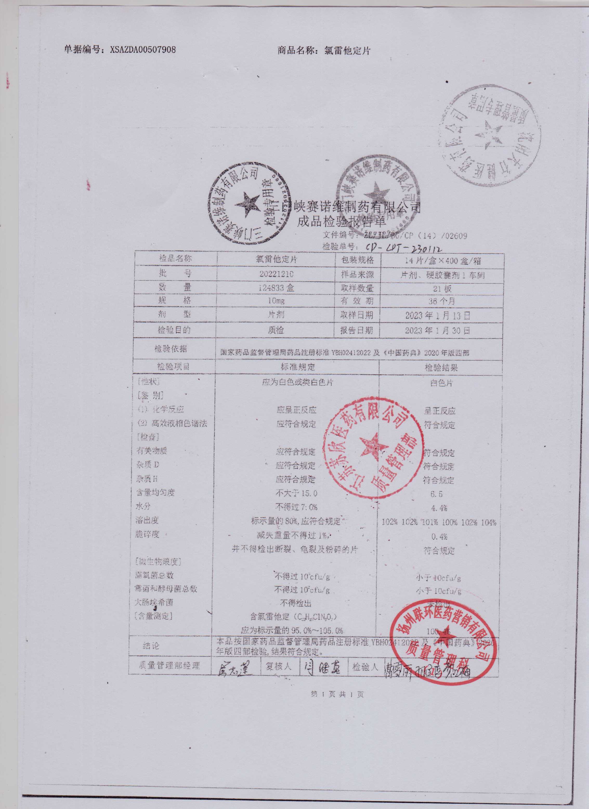 氯雷他定片20221210