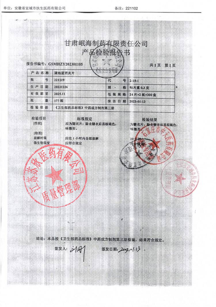 蒲地蓝消炎片221219