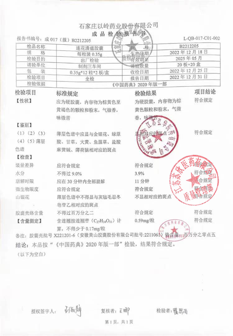 连花清瘟胶囊B2212205