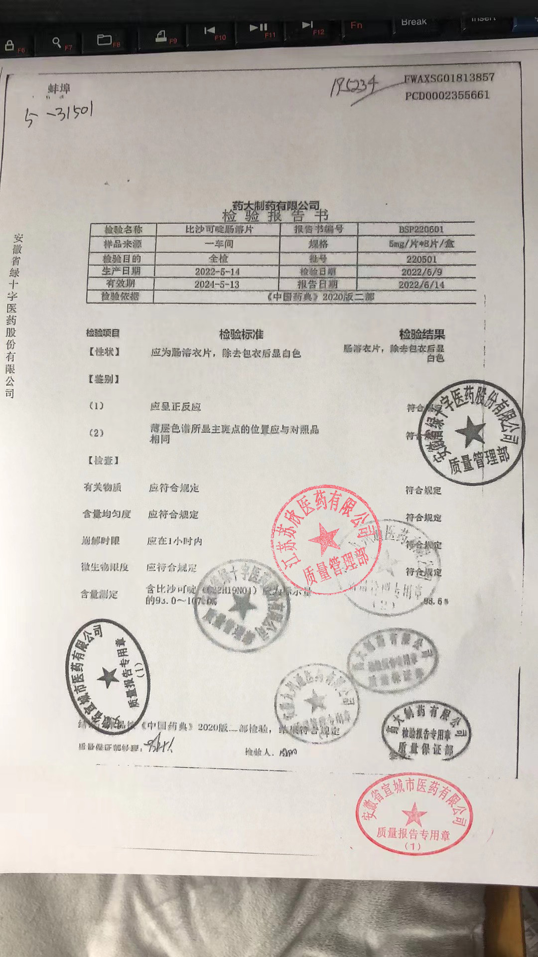 比沙可啶肠溶片220501